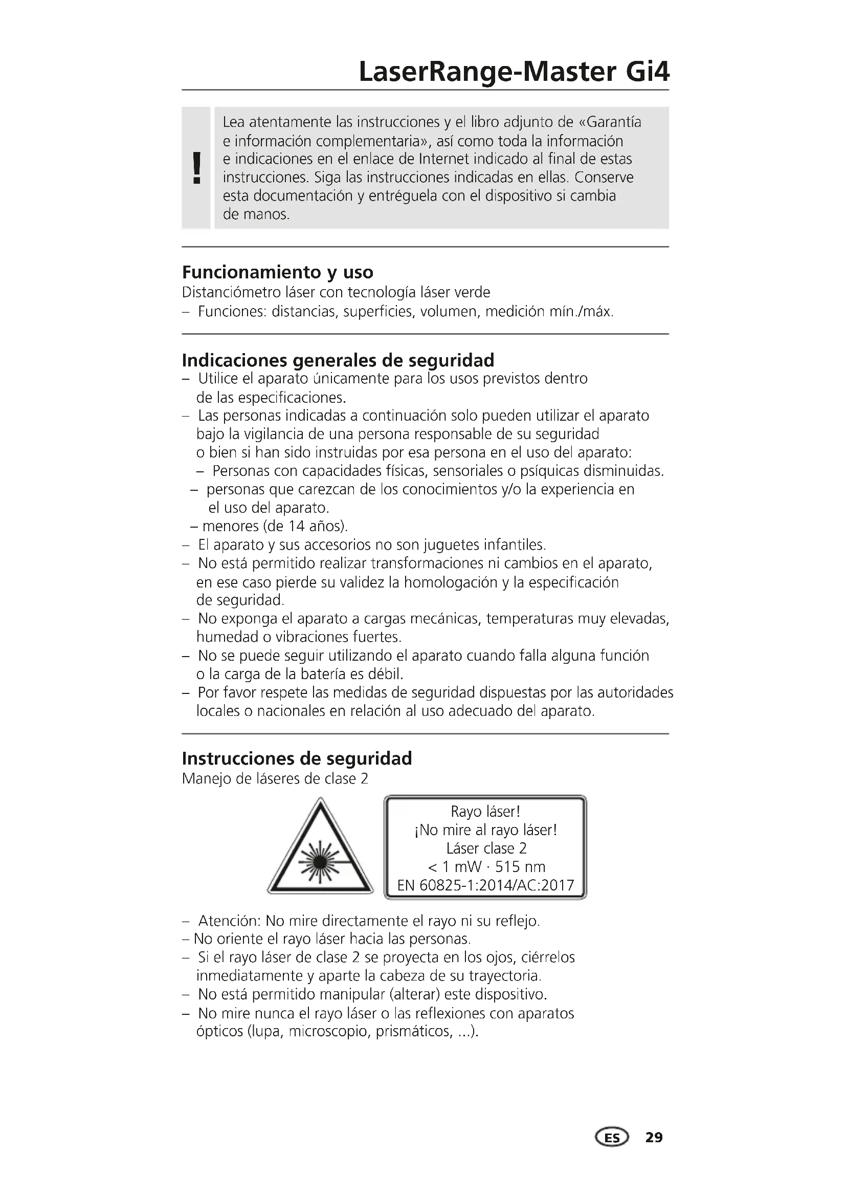 MANUAL DE USUARIO LaserRangeMaster Gi4 Laserliner