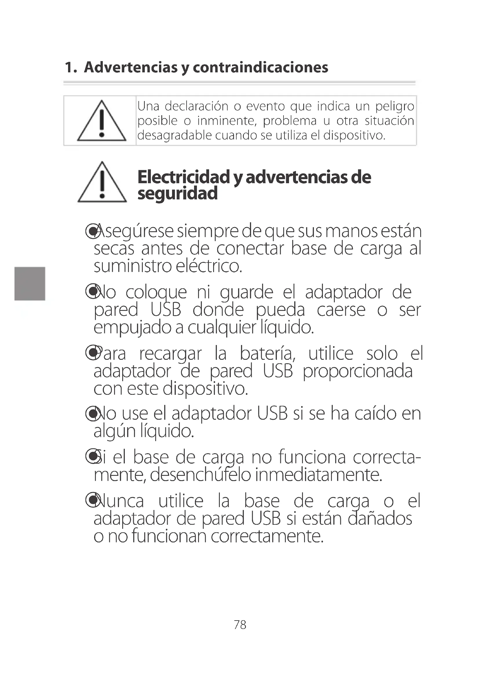 Una declaración o evento que indica un peligro posible o inminente, problema u otra situación desagradable cuando se utiliza el dispositivo. Electricidad y advertencias de seguridad
