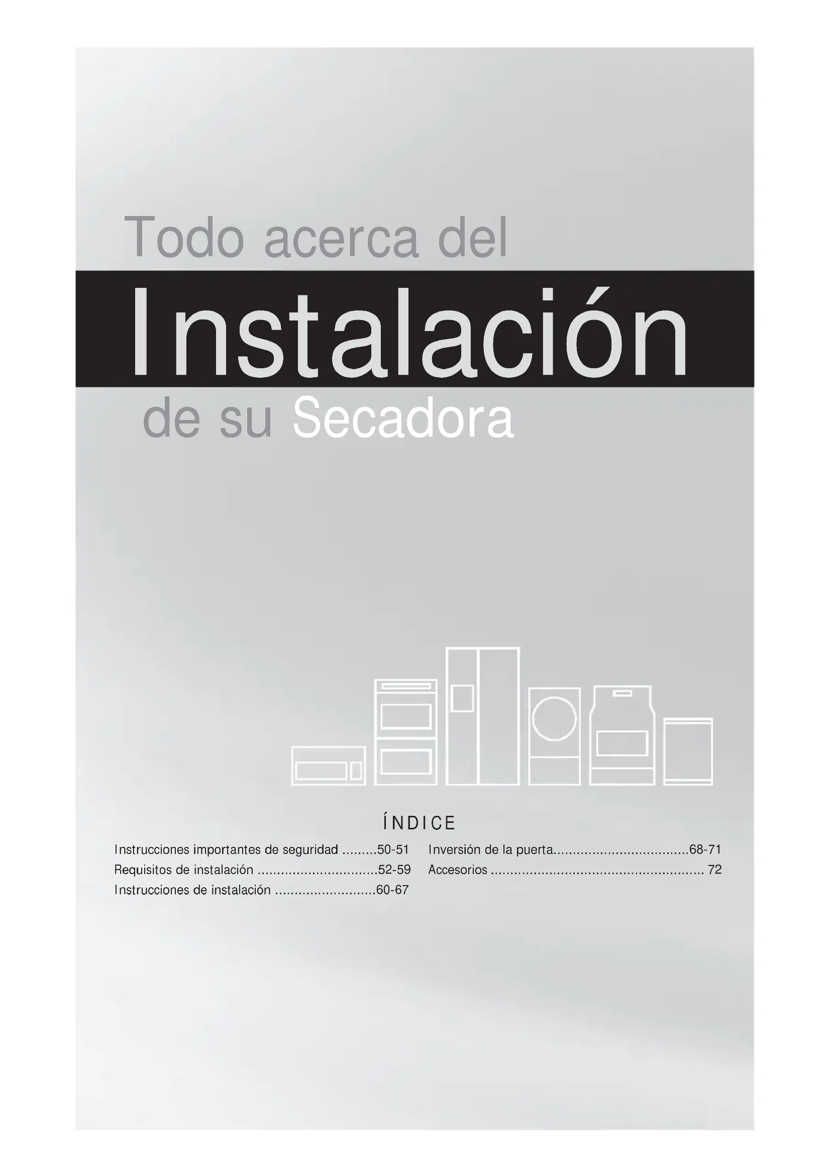 Conserve estas instrucciones para referencia futura. ADVERTENCIA Para su seguridad, debe seguir la información de esta guía para minimizar el riesgo de incendio o explosión o para evitar daños a la propiedad, lesiones personales o incluso la muerte. No almacene ni utilice gasolina ni otros líquidos o vapores infl amables cerca de este o de cualquier otro electrodoméstico. ATTENTION DANGER DE POIDS EXCESSIFPour éviter les blessures au dos ou d’autres types de blessure, demandez l’aide d’autres personnes pour déplacer ou soulever la laveuse/sécheuse.Lea las siguientes instrucciones antes de instalar y utilizar este electrodoméstico:• Después de desembalar la secadora, destruya los cartones y las bolsas de plástico. Los niños podrían utilizarlos para jugar. Los cartones cubiertos con alfombras, cubrecamas, o láminas de plástico pueden convertirse en cámaras de aire herméticamente cerradas y provocar asfi xia. Coloque todos los materiales en un basurero o manténgalos fuera del alcance de los niños.