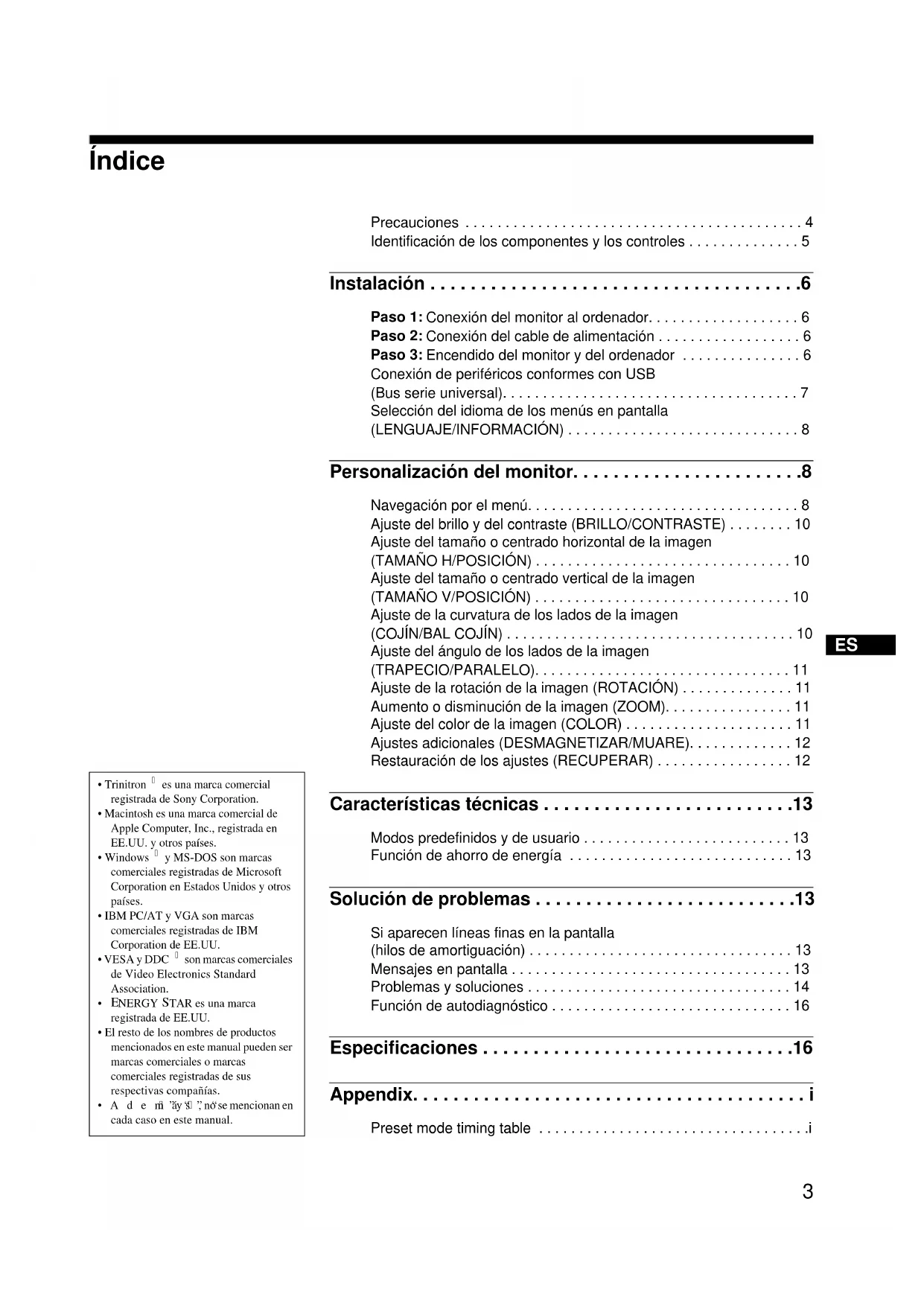 | El color no es uniforme | Desmagnetice el monitor* (pagina 12). Si situía un equipo que generate Campos magnéticos, como un altovoz, cerca del monitor, o cambia la orientación de este, el color pueda perdoruniformidad. |