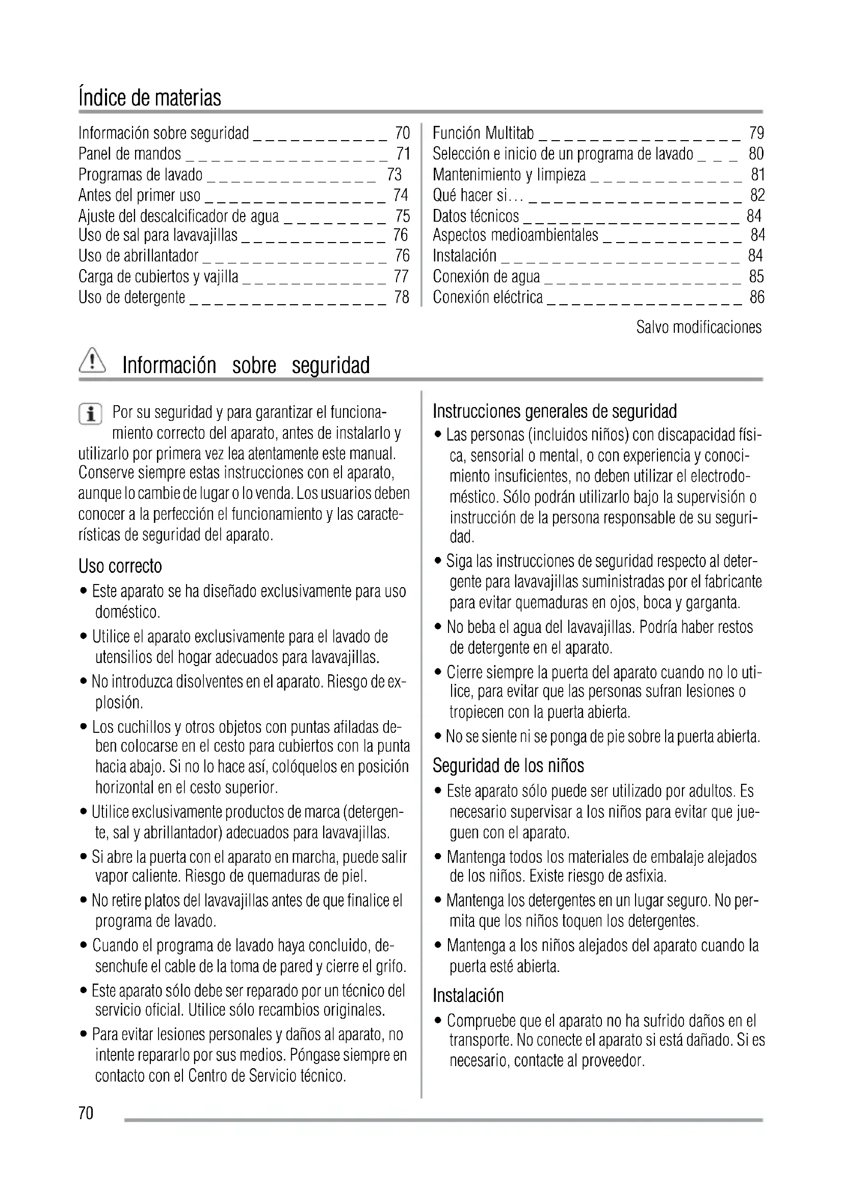 - Siga las instrucciones de seguridad respecto al deter- gente para lavavajillas suministradas por el fabricante para evitar quemaduras en ojos, boca y garganta.