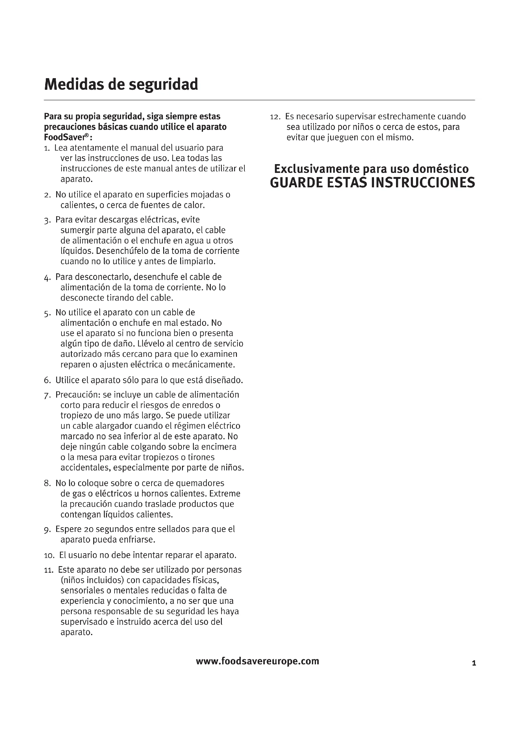 Para su propia seguridad, siga siempre estas precauciones básicas cuando utilice el aparato FoodSaver