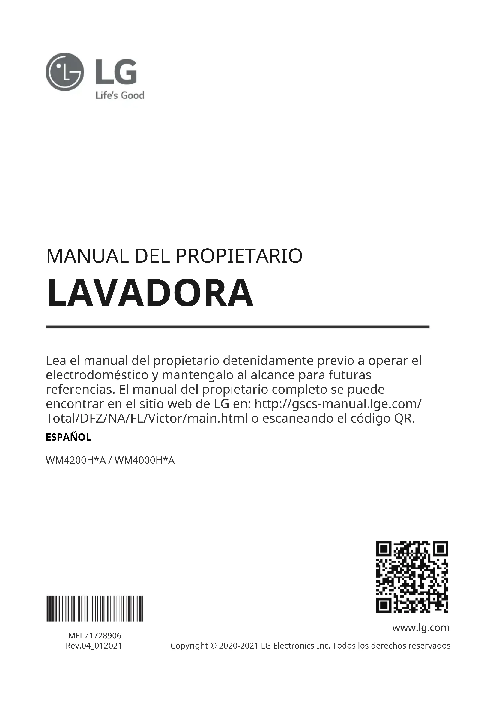 WM4100HWA - Lavadora LG - Manual de uso y guía de instrucciones gratis