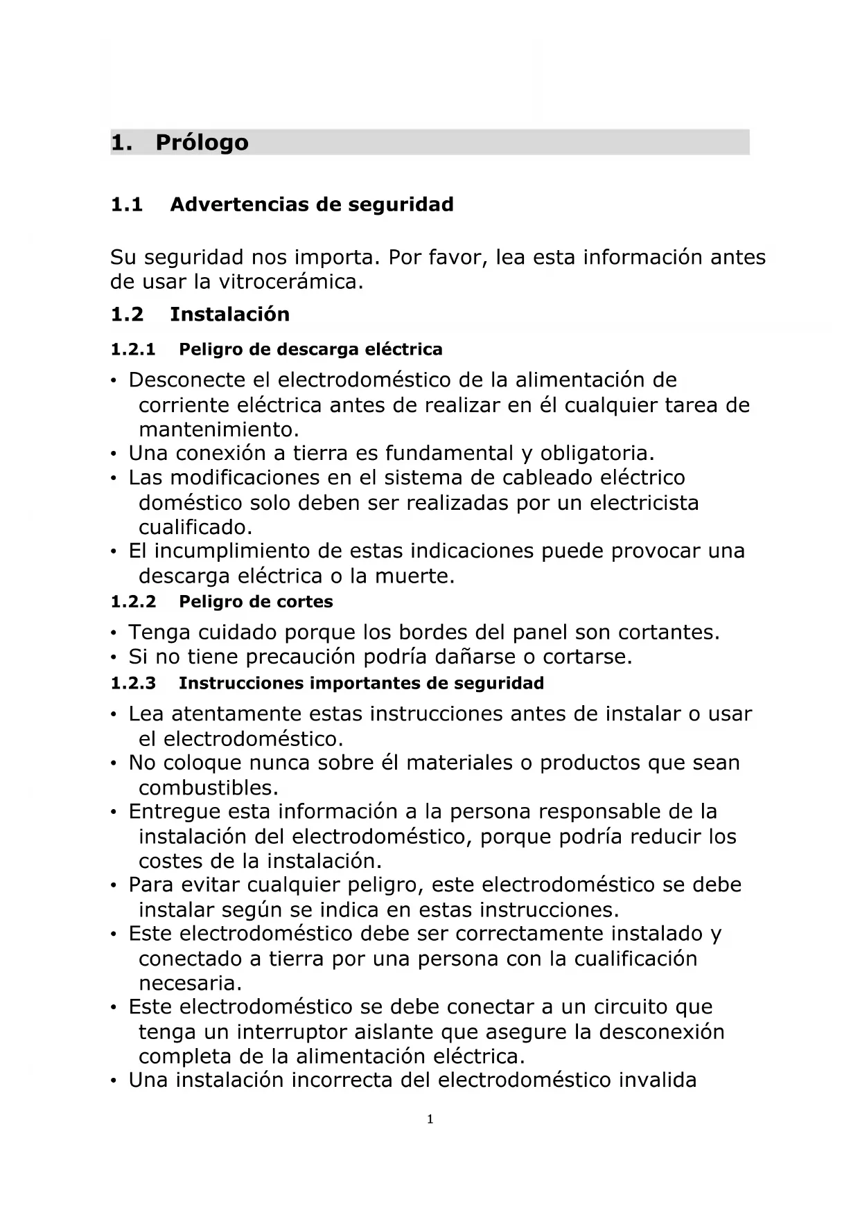 1.2.1 Peligro de descarga eléctrica