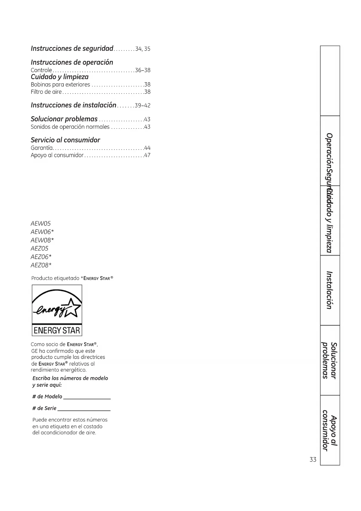 AEW08LN - Aire acondicionado GE - Manual de uso y guía de instrucciones gratis