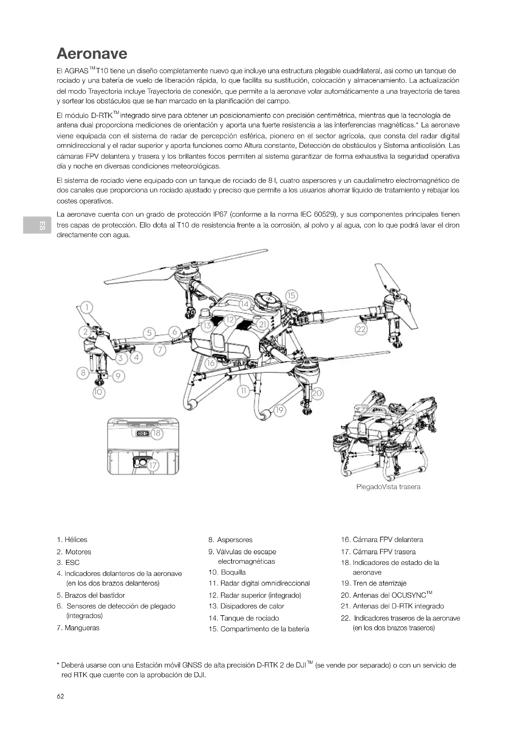(se vende por separado) o con un servicio de red RTK que cuente con la aprobación de DJI. Aeronave El AGRAS