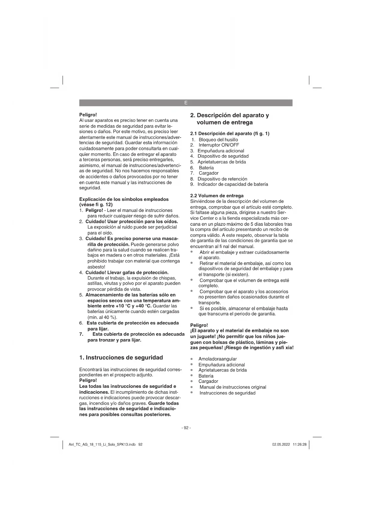 ce una protección para los oídos adecuada. Anl_TC_AG_18_115_Li_Solo_SPK13.indb 93Anl_TC_AG_18_115_Li_Solo_SPK13.indb 93 02.05.2022 11:26:2802.05.2022 11:26:28E