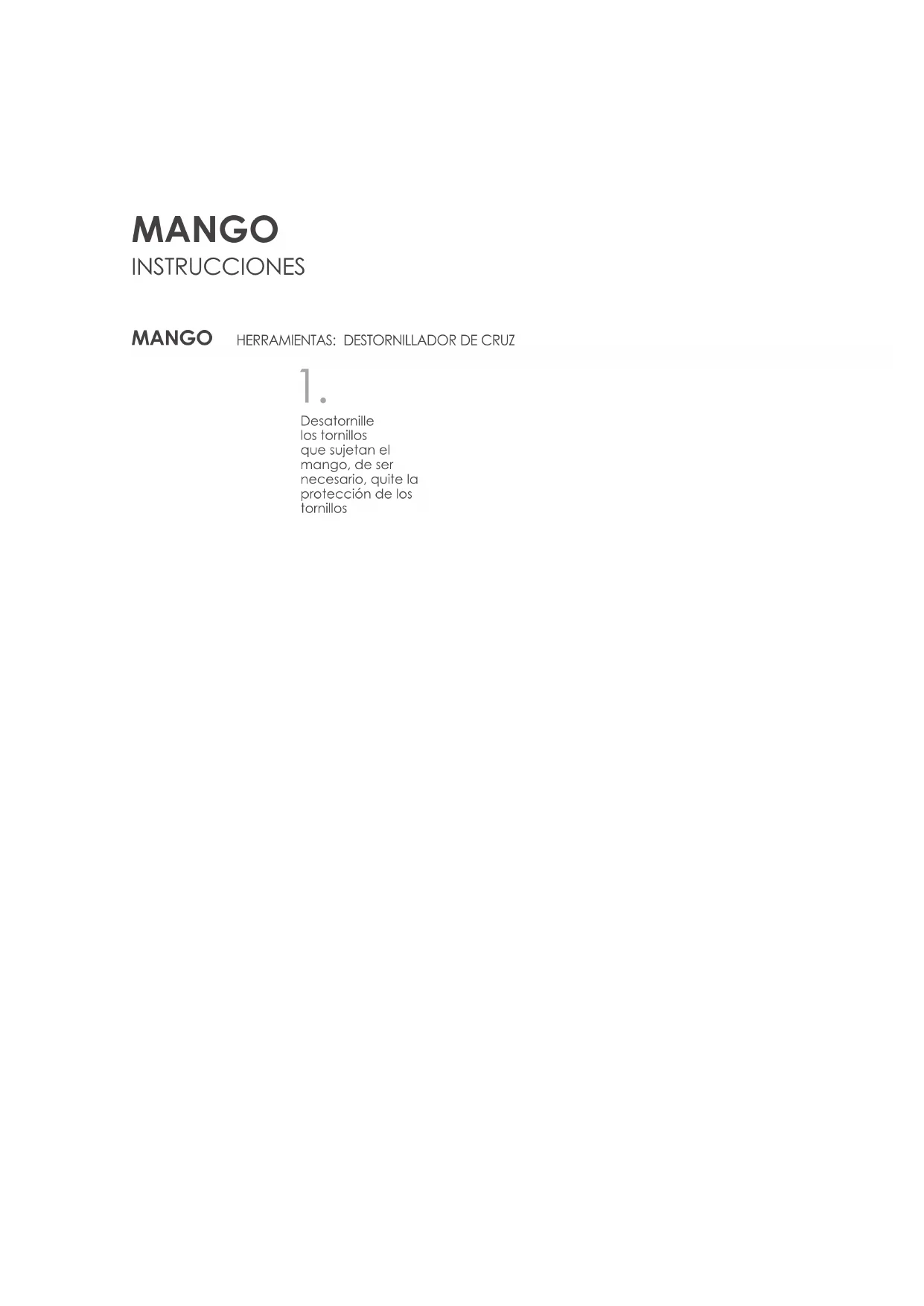 MANGO INSTRUCCIONES MANGO HERRAMIENTAS: DESTORNILLADOR DE CRUZAbra la puerta Desde la esquina tire del empaque hacia afuera para sacarlo