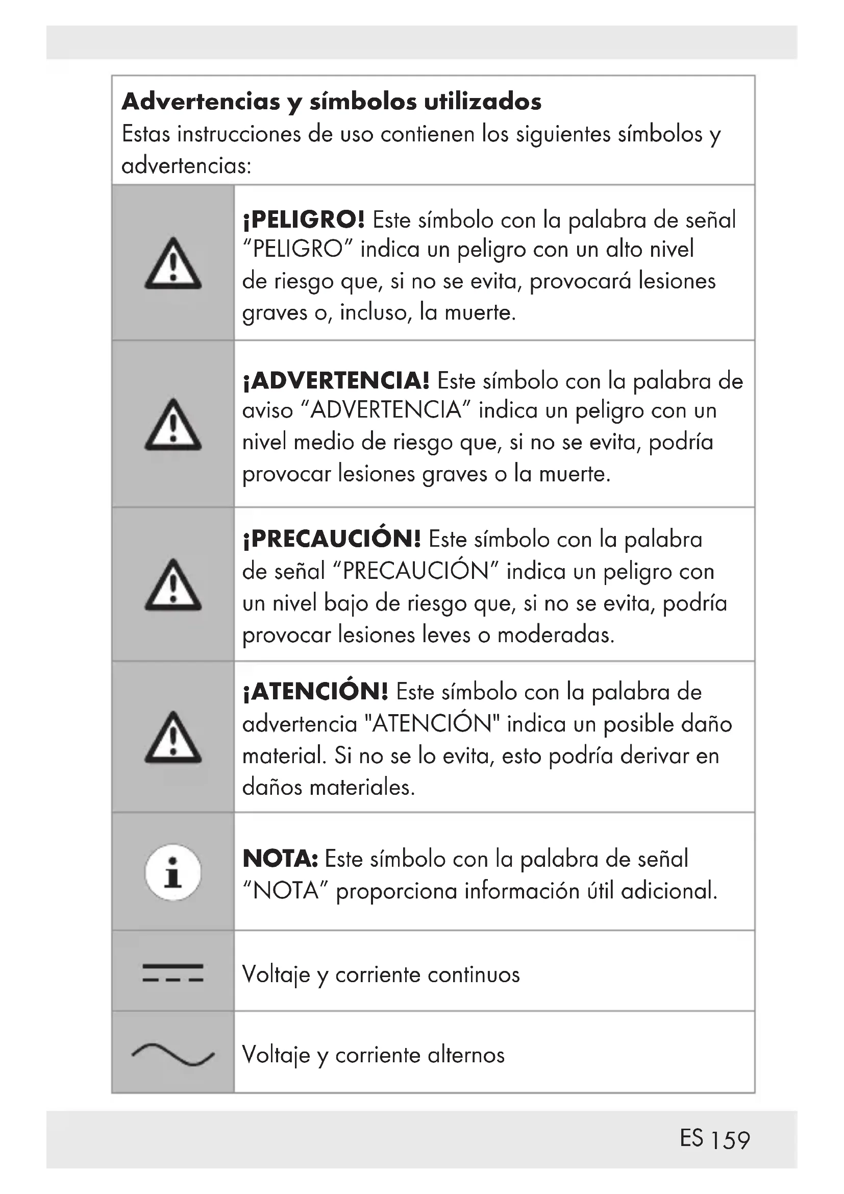 | Advertencias yvinculos usizados Estas instrucciones de uso contienen los siguientesvinculos y advertencias: | |