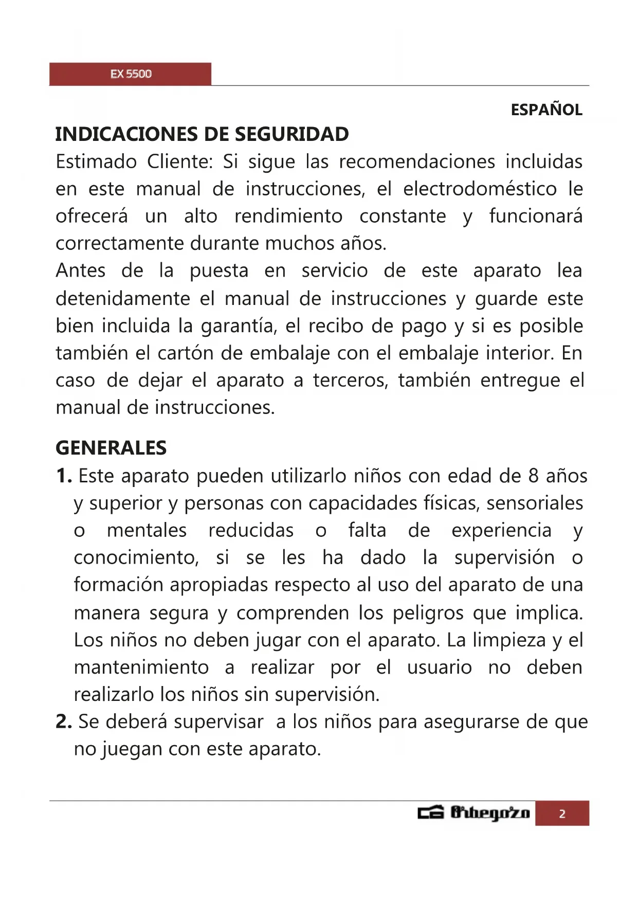 MANUAL DE USUARIO EX 5500 Orbegozo