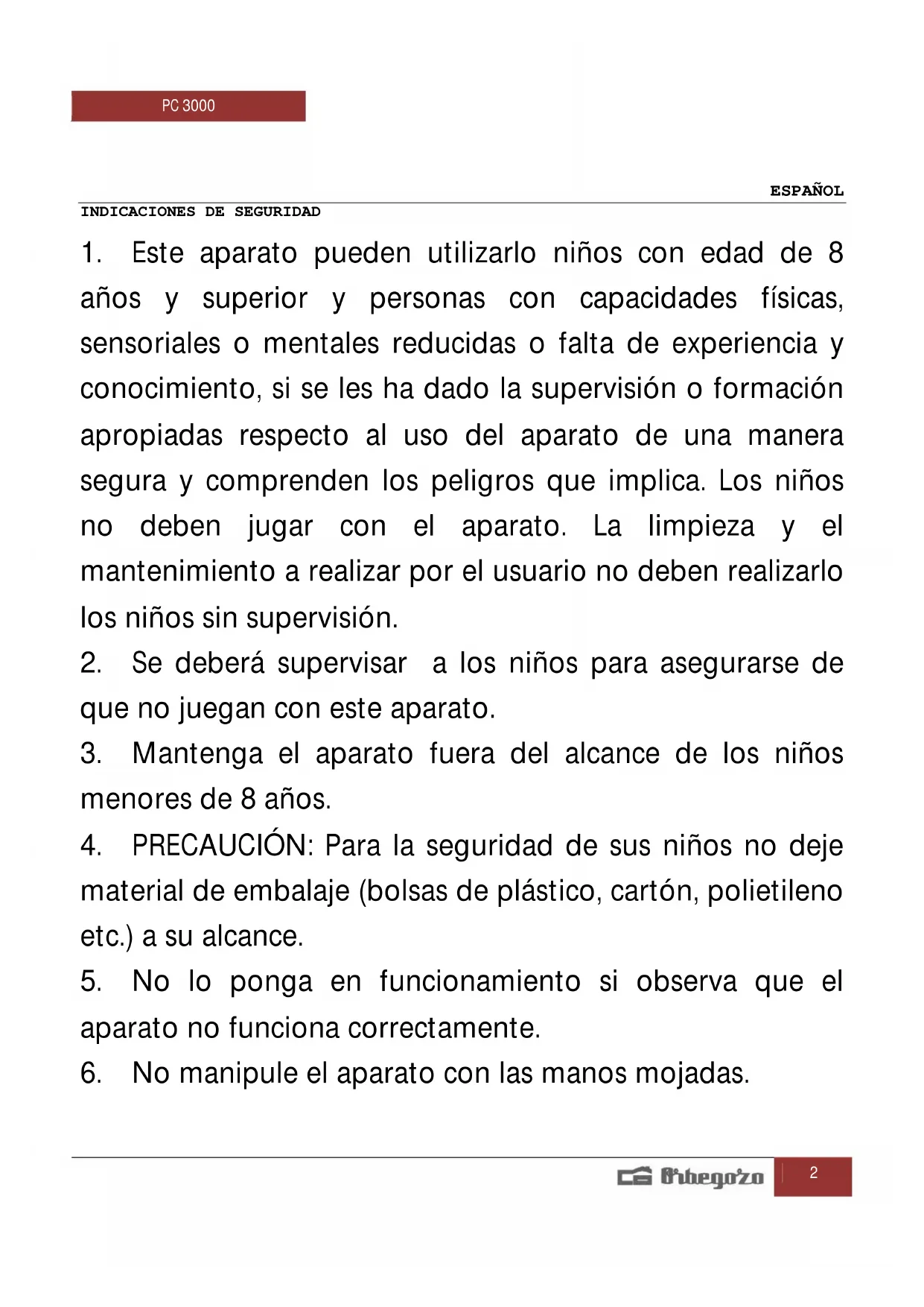Encuentra gratis el manual del aparato PC 3000 Orbegozo en formato PDF.