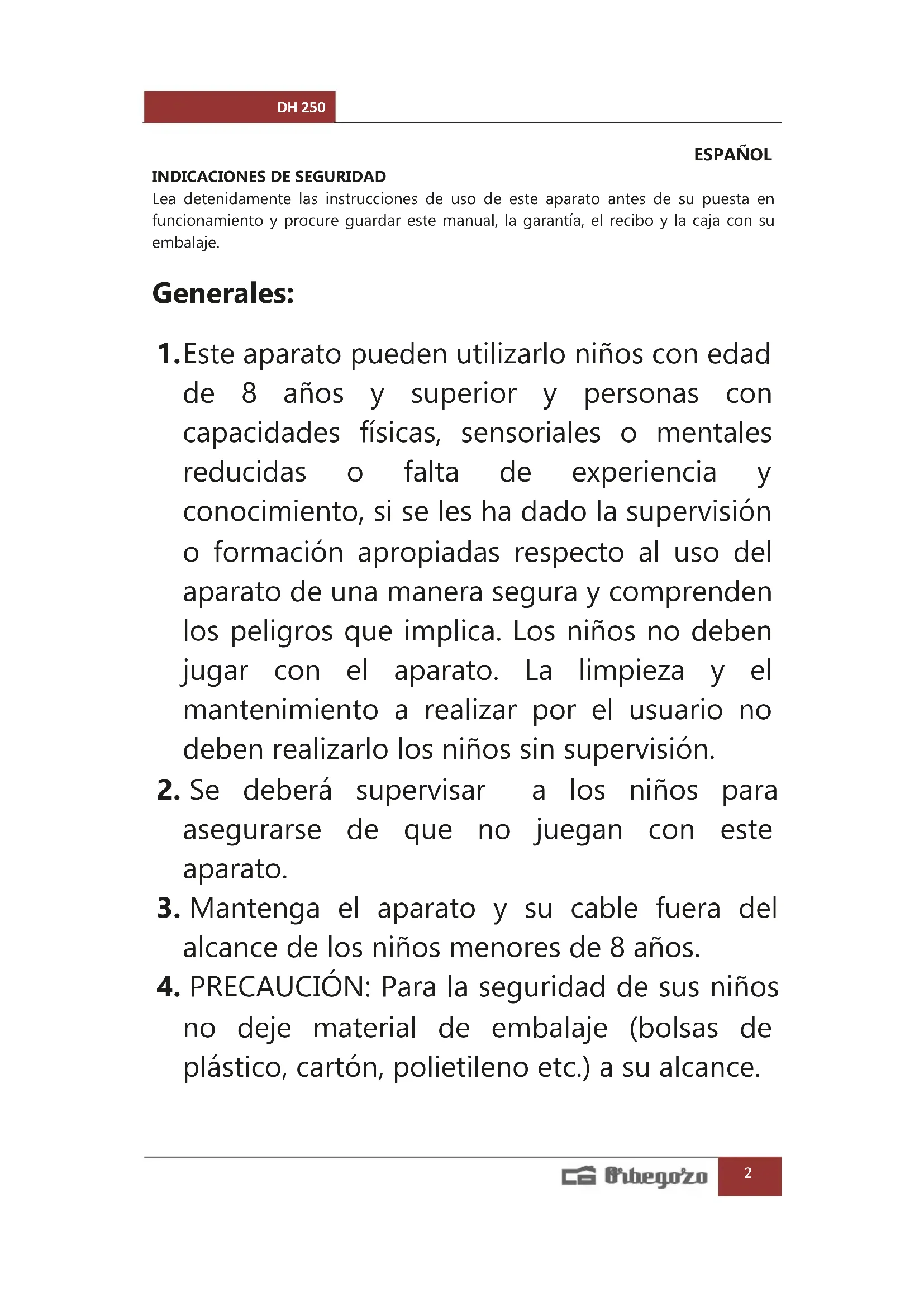 Encuentra gratis el manual del aparato DH 305 Orbegozo en formato PDF.