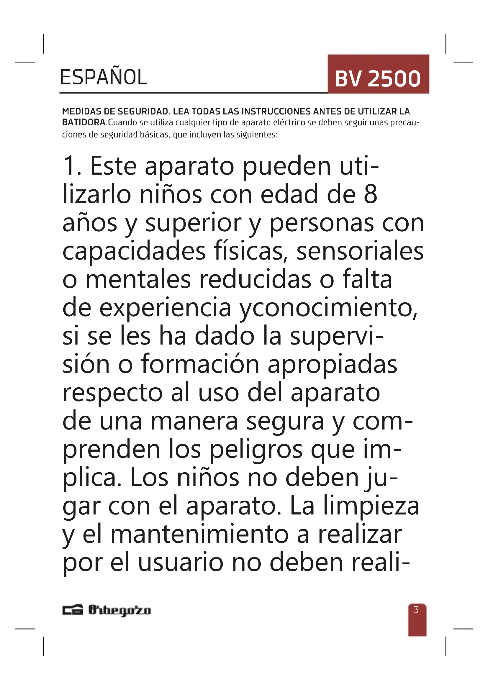 MANUAL DE USUARIO BV 2500 Orbegozo