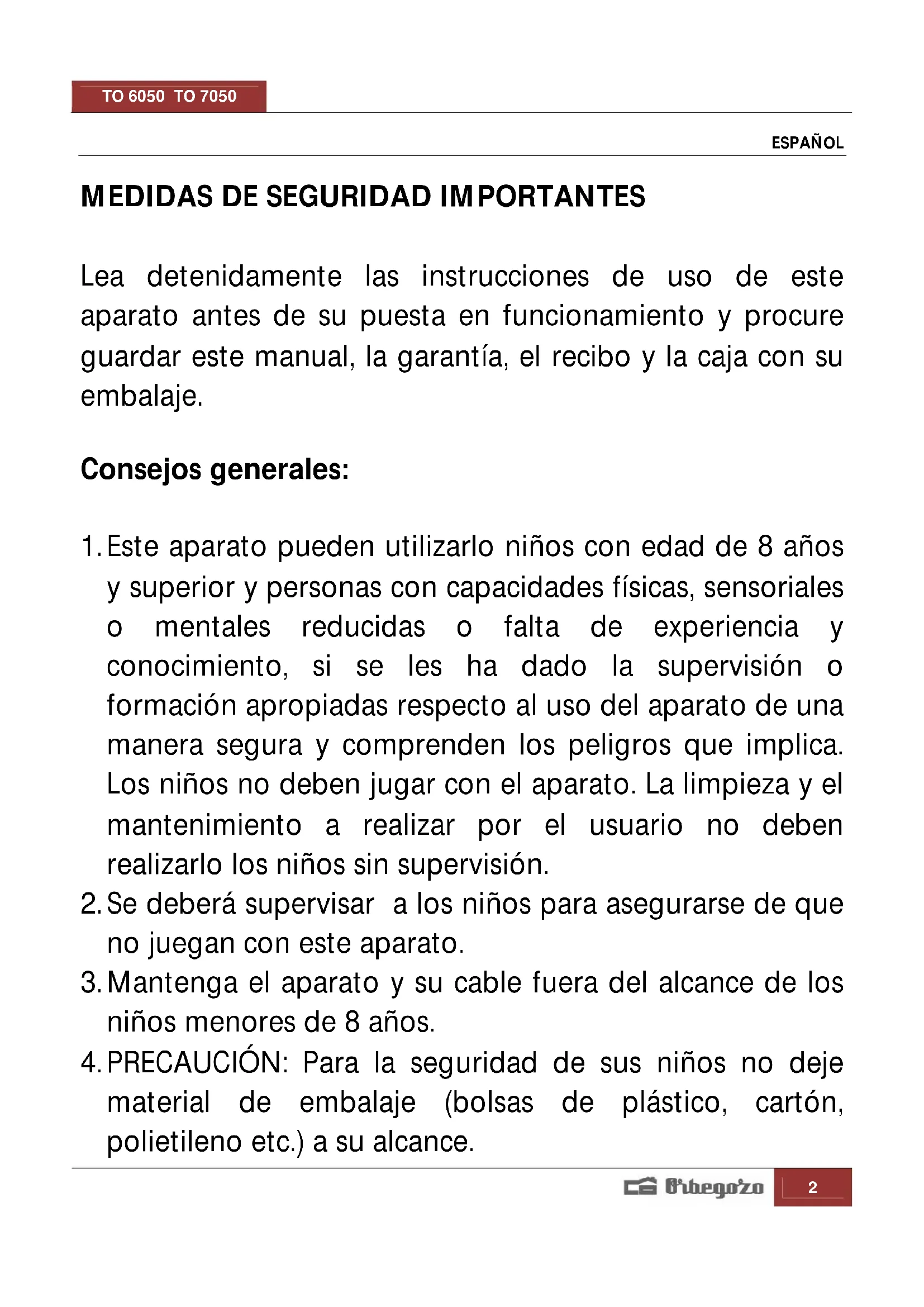 MANUAL DE USUARIO TO 6050 Orbegozo