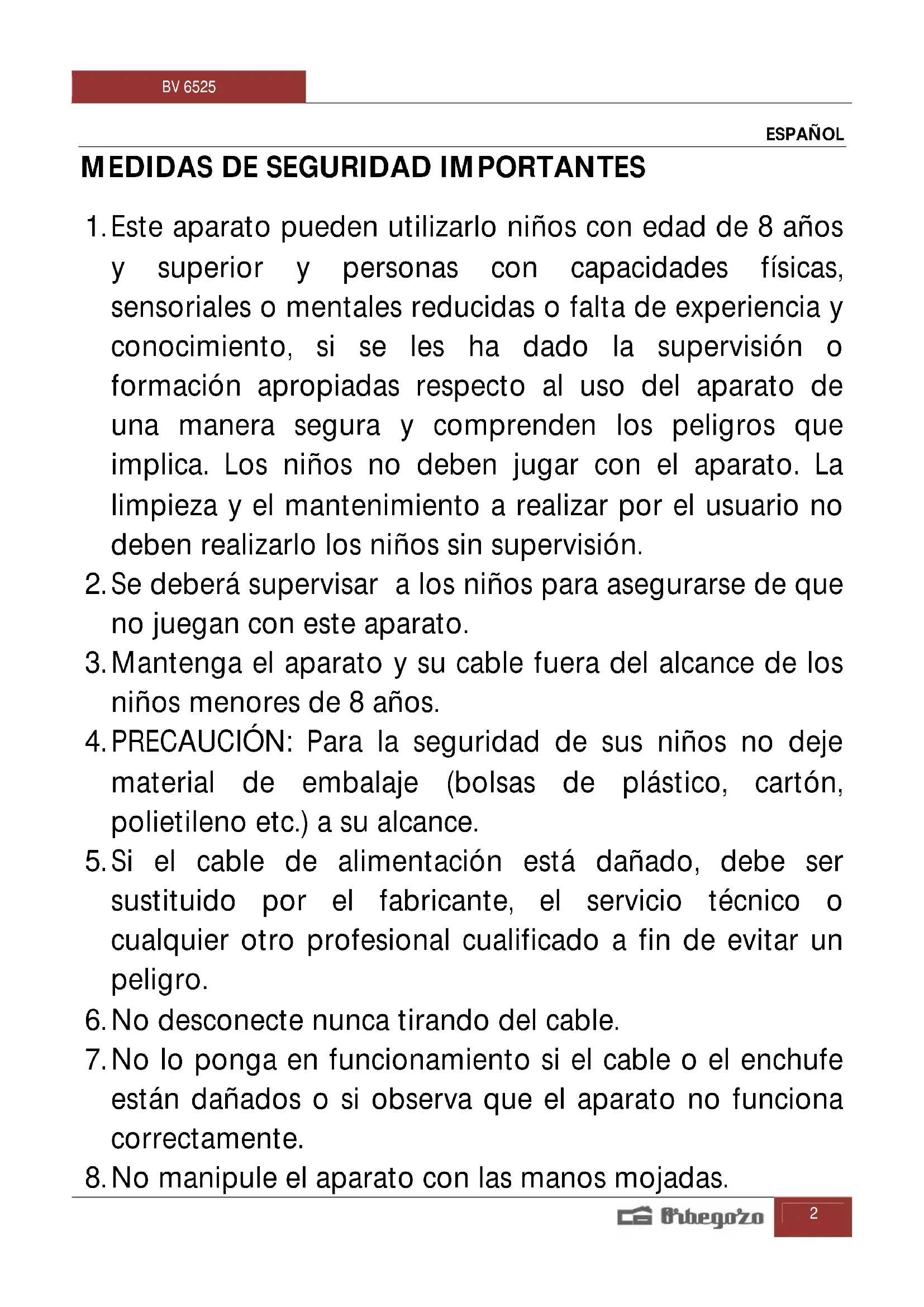 MANUAL DE USUARIO BV 6525 Orbegozo