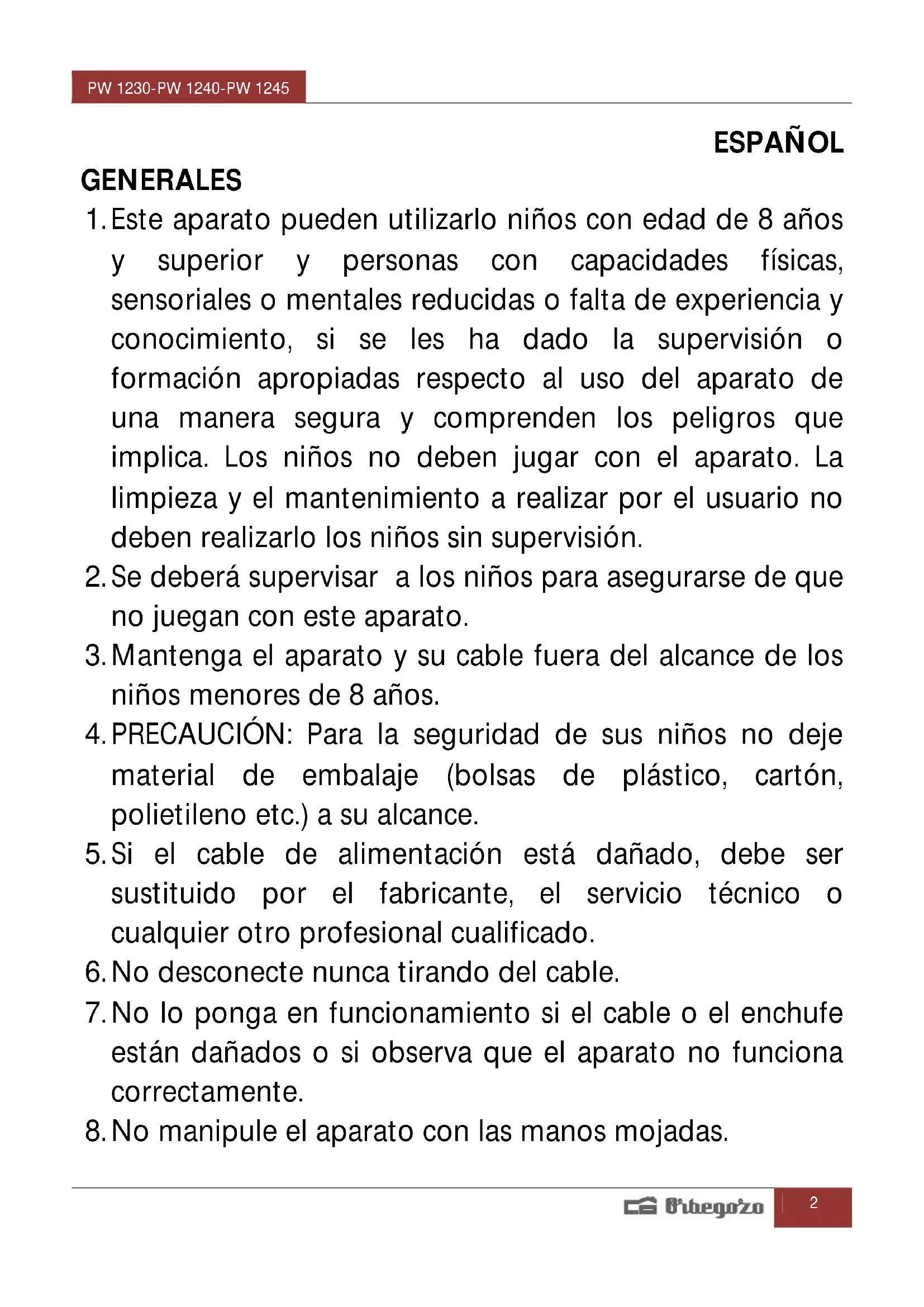 MANUAL DE USUARIO PW 1240 Orbegozo