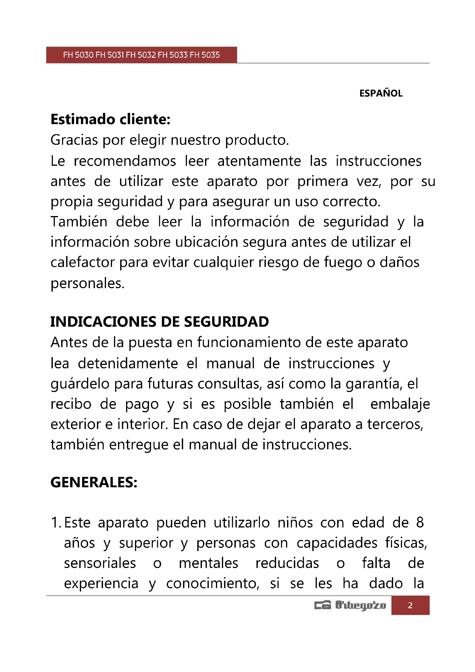 MANUAL DE USUARIO FH 5031 Orbegozo