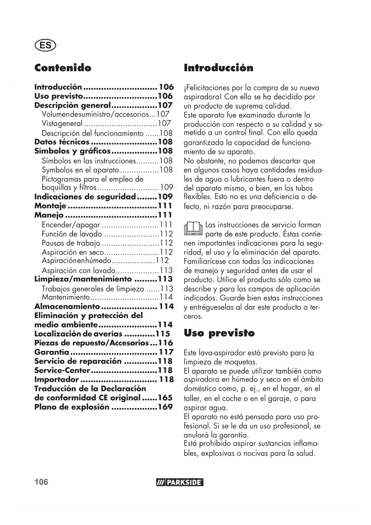 El aparato se pueda usar también como aspiradora en humedo y seco en el ambito domestico como, p. ej., en el hogar, en el taller, en el coche o en el garaje, o para aspirar agua.