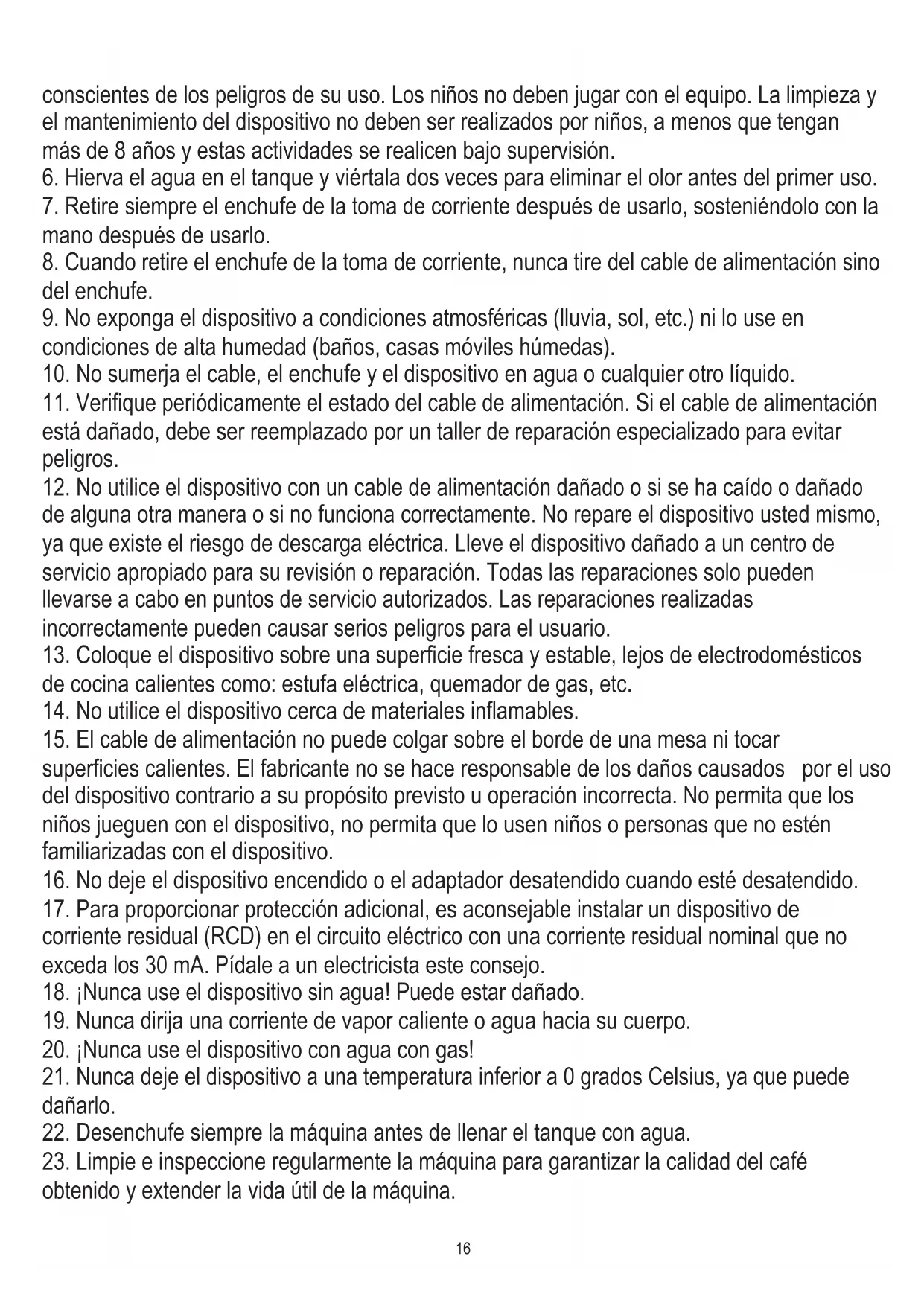 22. Desenchufe siempre la máquina antes de llenar el tanque con agua.