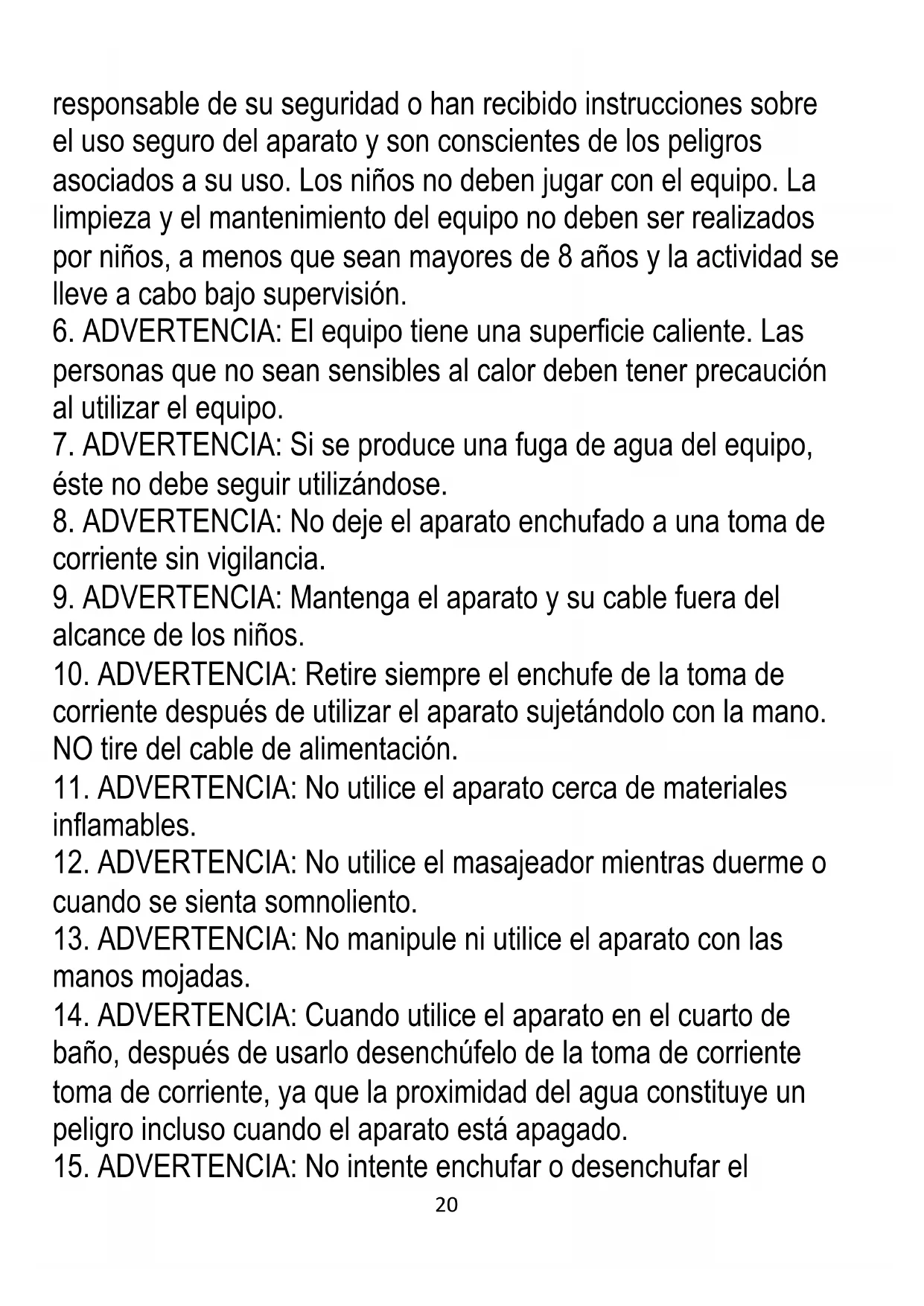 20. No utilice nunca el masajeador si tiene heridas abiertas en
