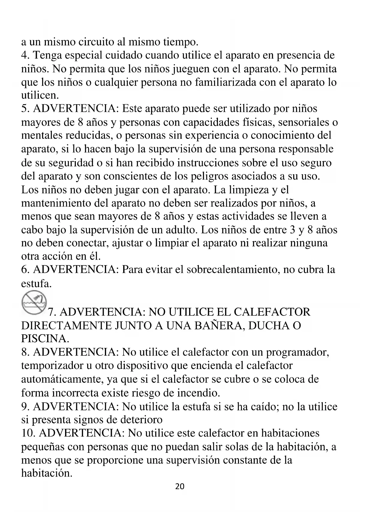 10. ADVERTENCIA: No utilice este calefactor en habitaciones