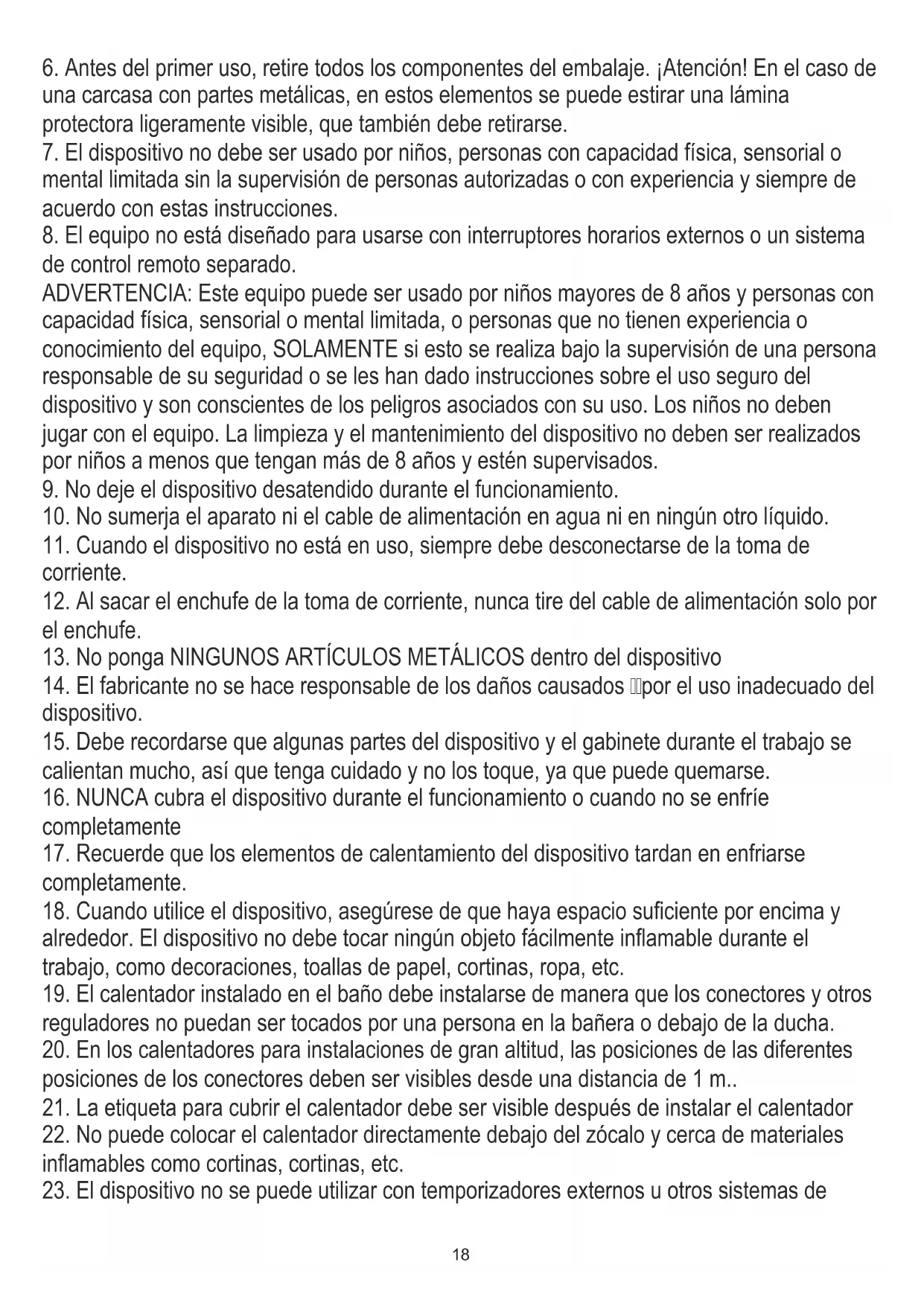 7. El dispositivo no debe ser usado por niños, personas con capacidad física, sensorial o