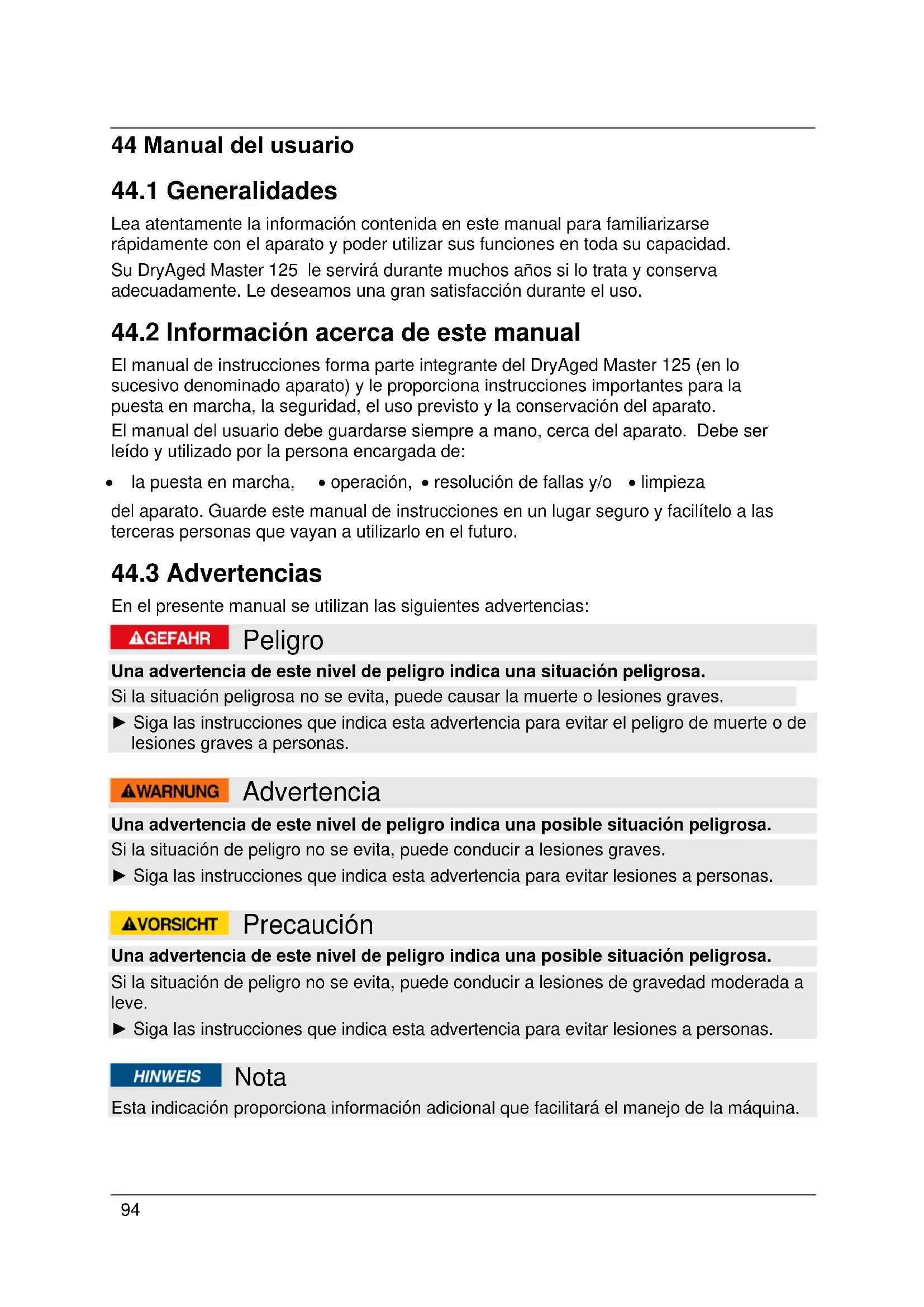 Manual del usuario DryAged Master 125 (690)94 44 Manual del usuario