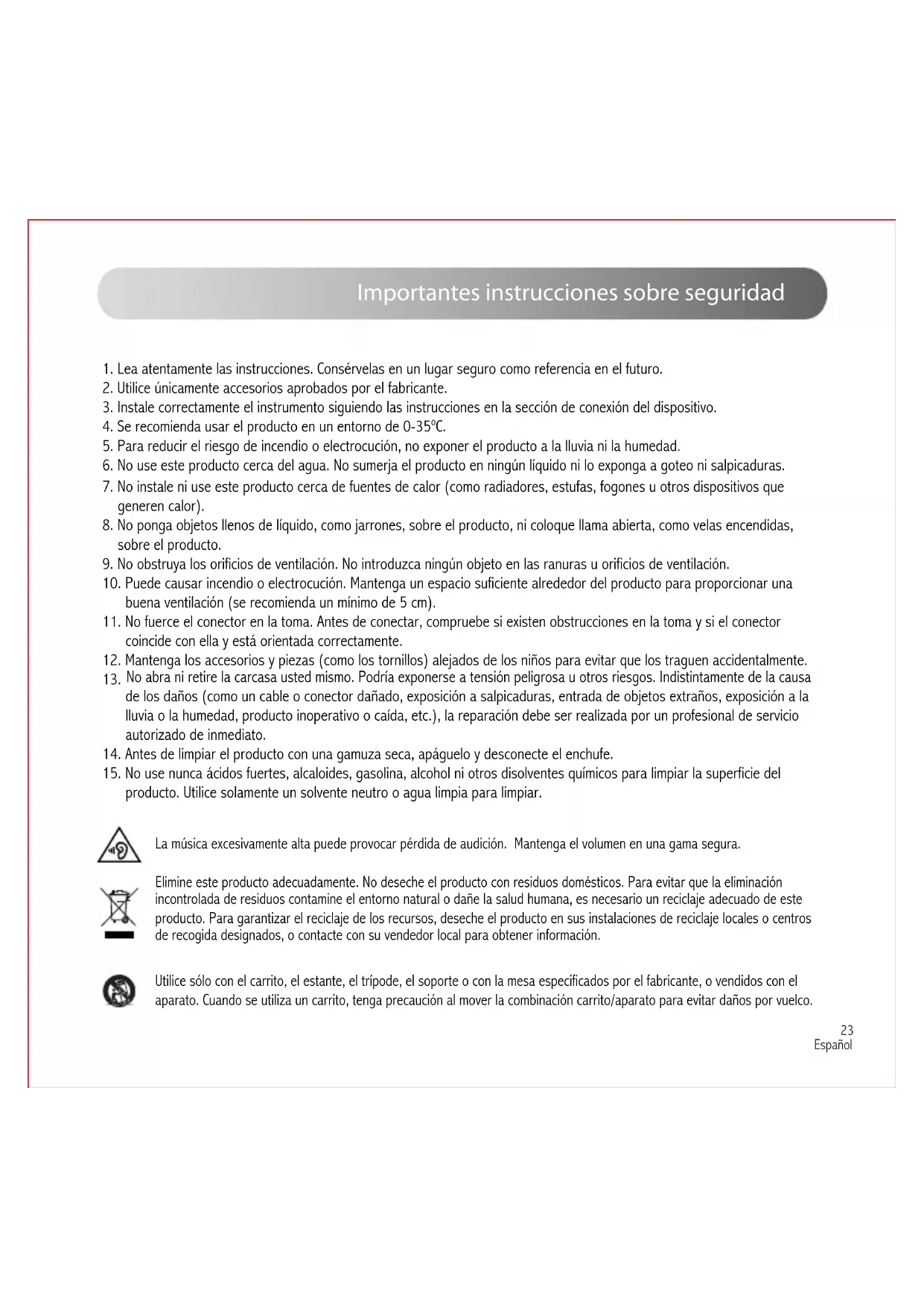 6. No use este producto cerca del agua. No sumerja el producto en ningún líquido ni lo exponga a goteo ni salpicaduras.