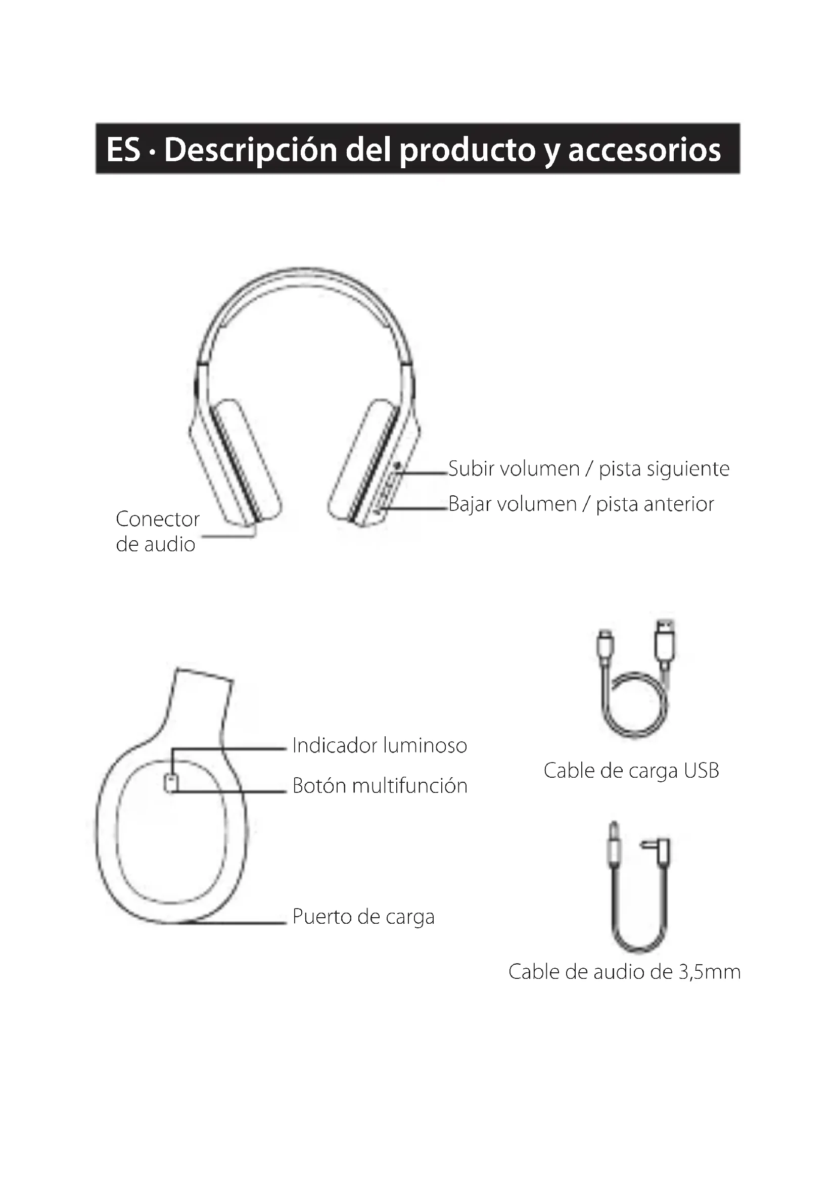 - Cuando el auricular no se usa por periodos prolongados, la batería entra en estado de hibernación. Tiene que cargar durante unos 30 minutos y luego se encenderá la luz roja. Sin sonido