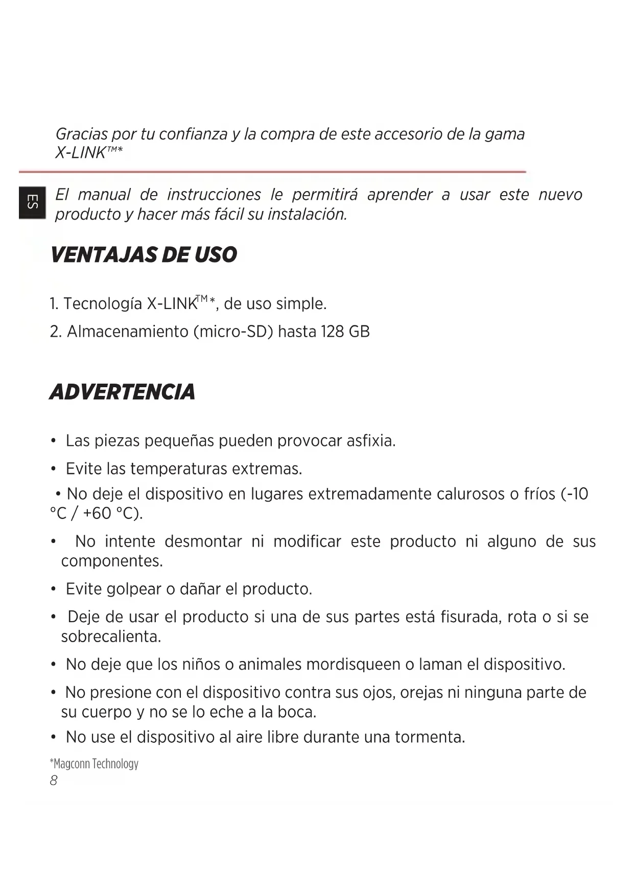 - No use el dispositivo al aire libre durante una tormenta. Gracias por tu conanza y la compra de este accesorio de la gama X-LINK™* El manual de instrucciones le permitirá aprender a usar este nuevo producto y hacer más fácil su instalación.