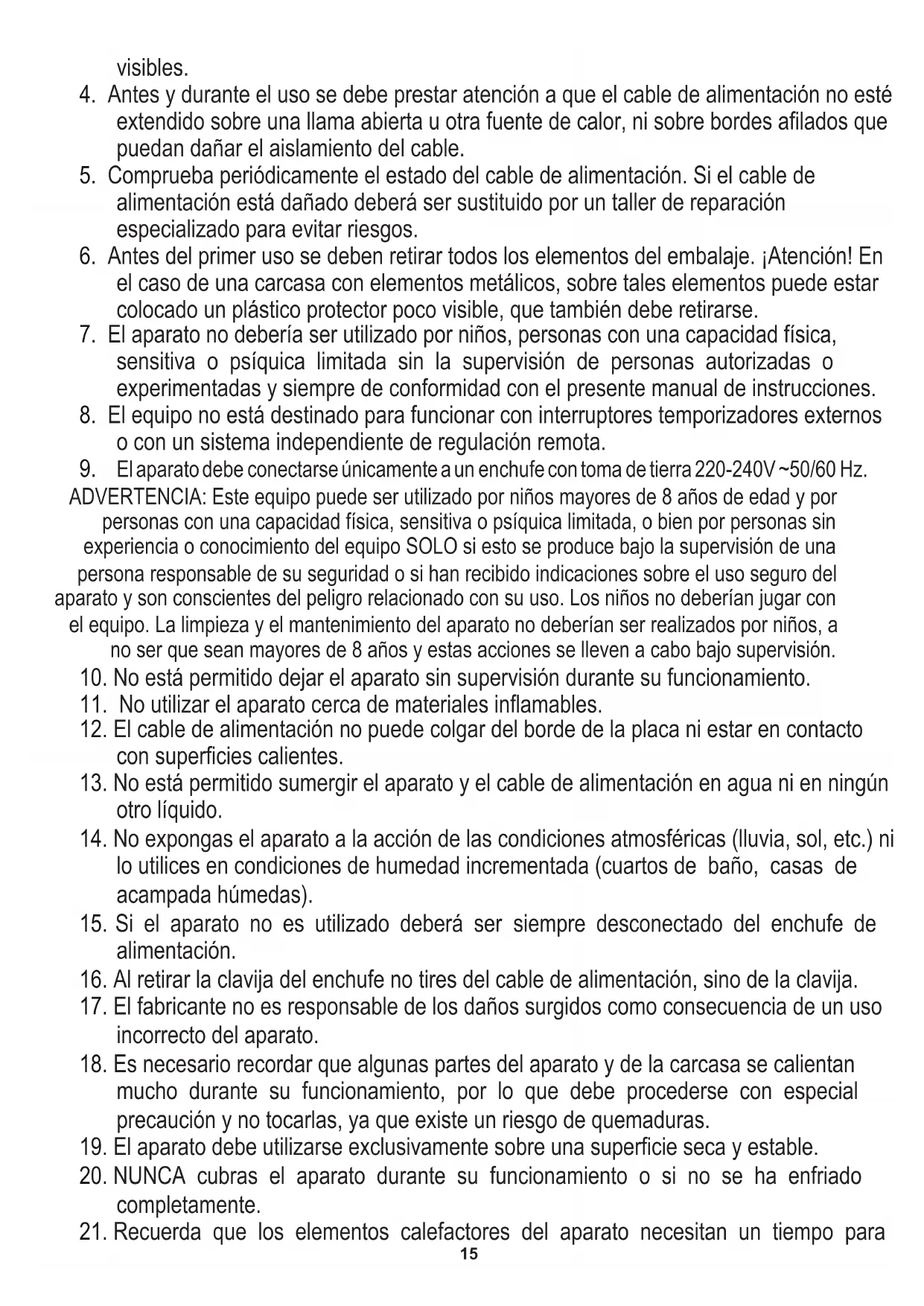 7. El aparato no debería ser utilizado por niños, personas con una capacidad física,
