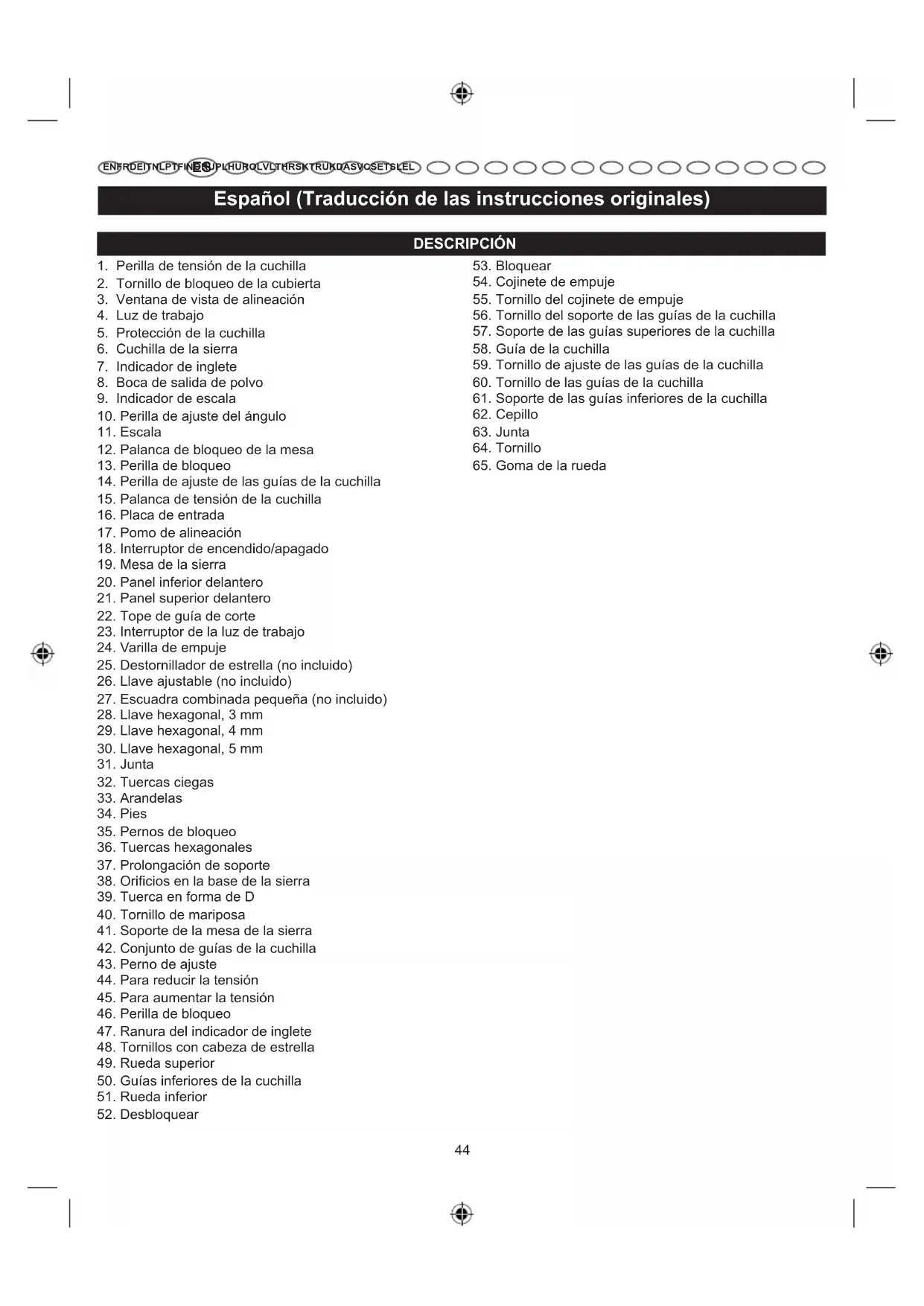 SIERRA DE CINTA DE 350 W CON LUZ DE TRABAJO mANUAL DE UTILIZACIÓN 44