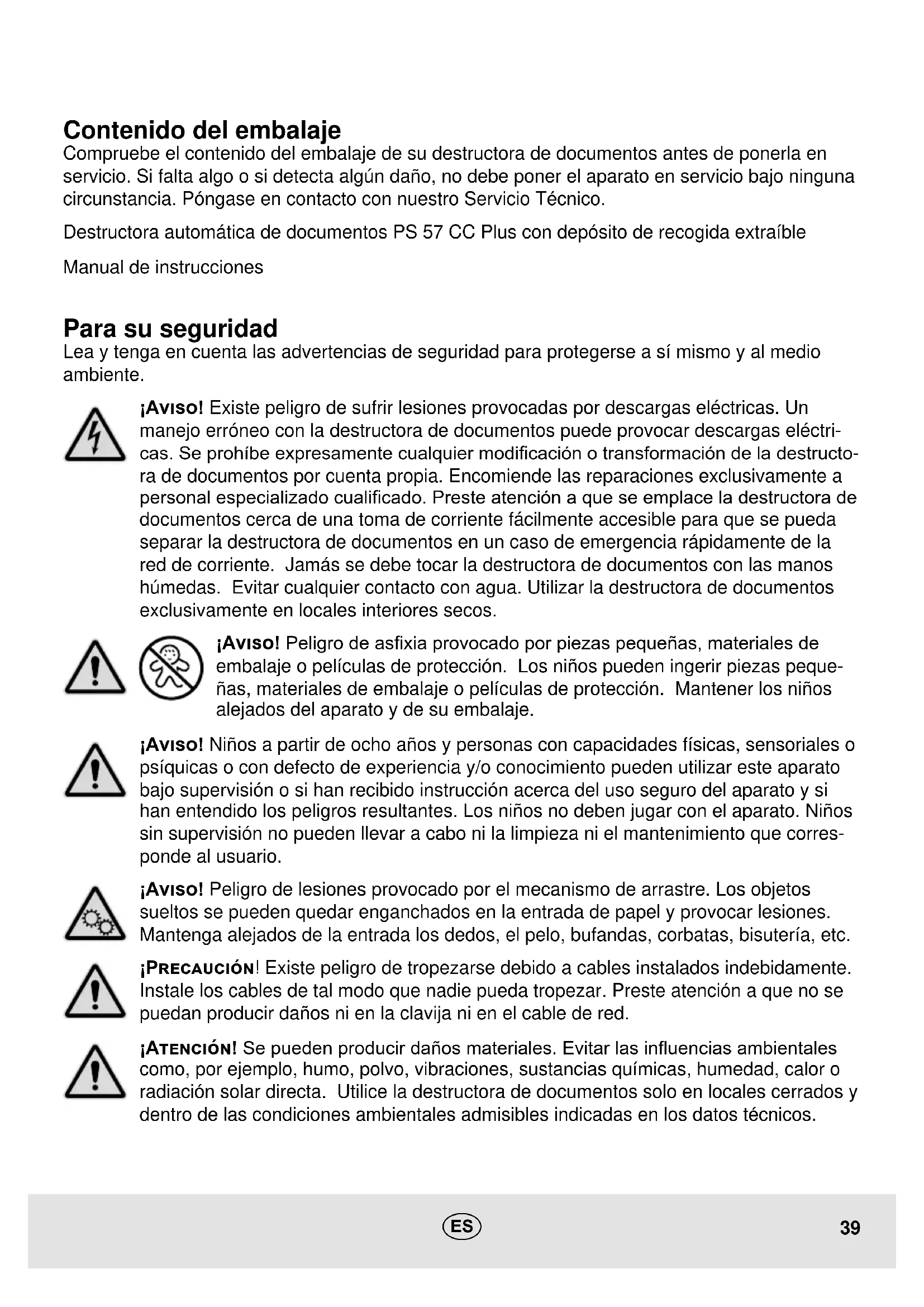 PS 57 CC Plus - Destructora de documentos OLYMPIA - Manual de uso y guía de instrucciones gratis