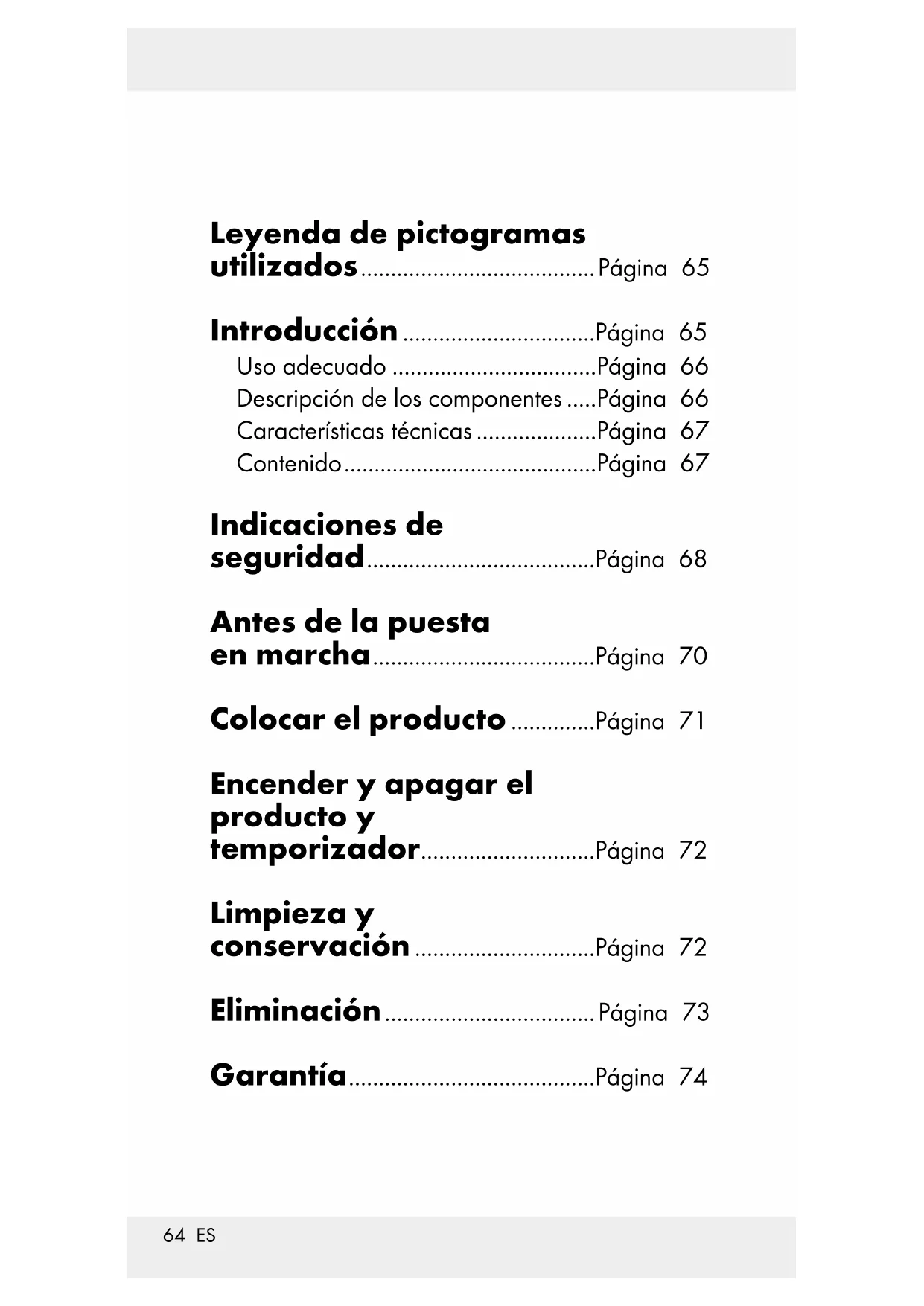 de la toma de corriente.72 ES Encender y apagar el producto y temporizador El botón ON / OFF