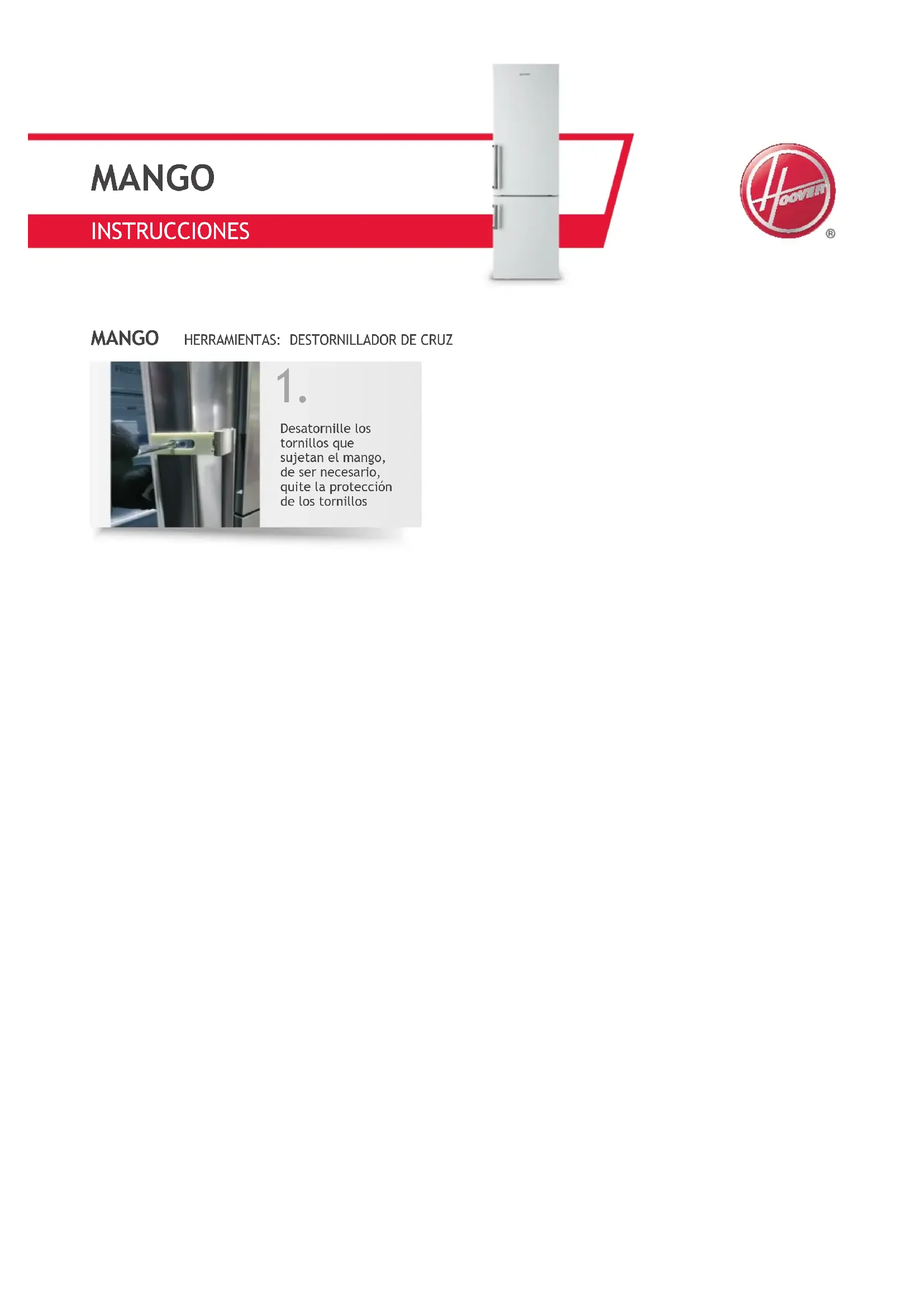 Recomendamos que siga estas instrucciones. En caso de dudas, busque la asesoría de un experto. Haier Europe desconoce cualquier responsabilidad de los daños que puedan derivarse por no seguir las instrucciones proporcionadas.INSTRUCTIONS Retirer les vis qui xent la poignée, retirer la protection des vis si besoin
