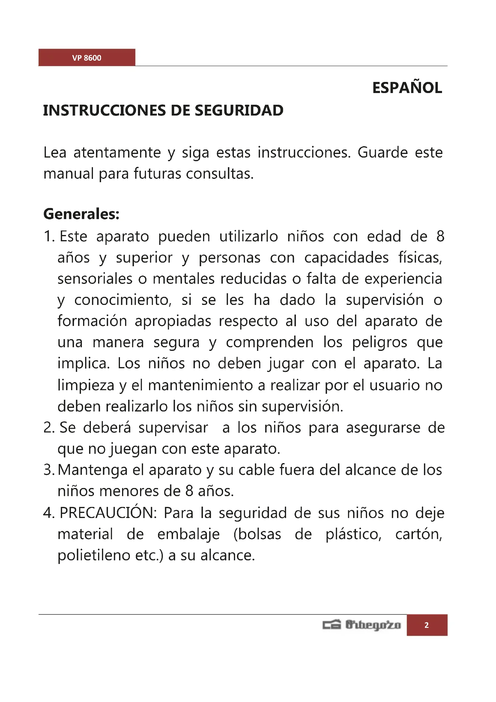 MANUAL DE USUARIO VP 8600 Orbegozo