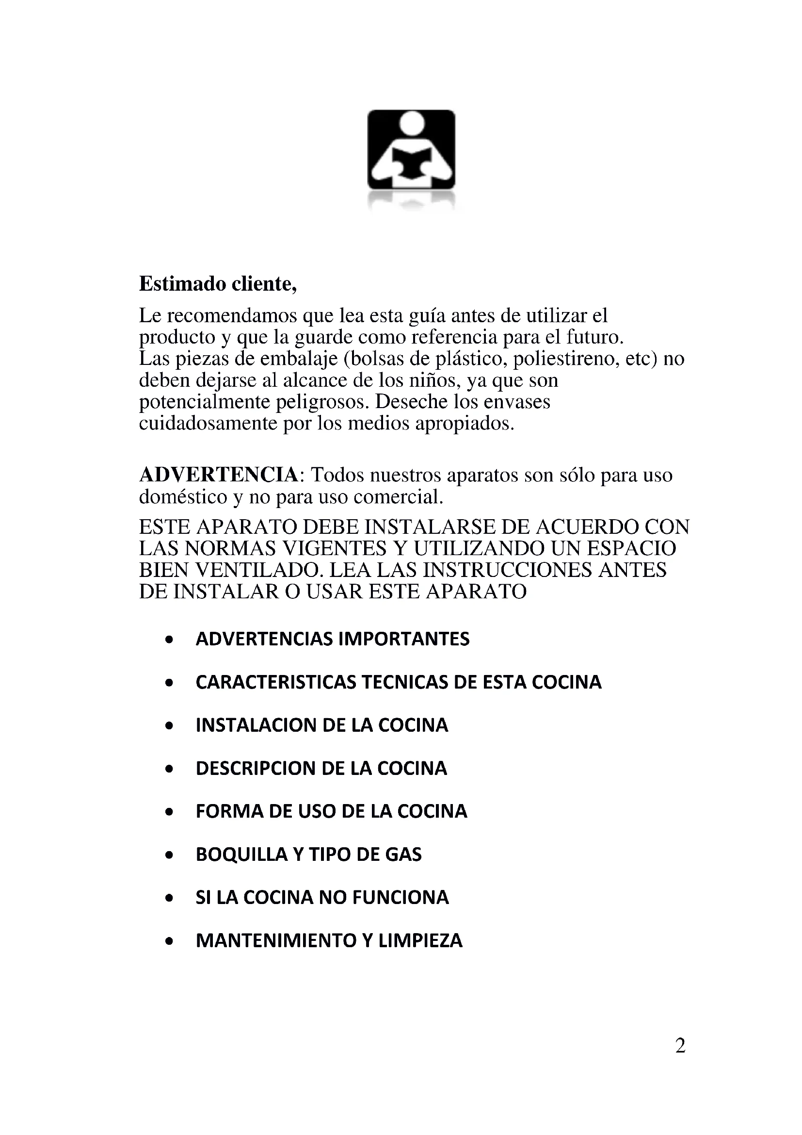 - Este aparato es sólo para fines de cocción. No debe ser utilizado para otros fines. No se usa para la calefacción de habitaciones. Todos nuestros aparatos son sólo para uso doméstico y no para uso comercial