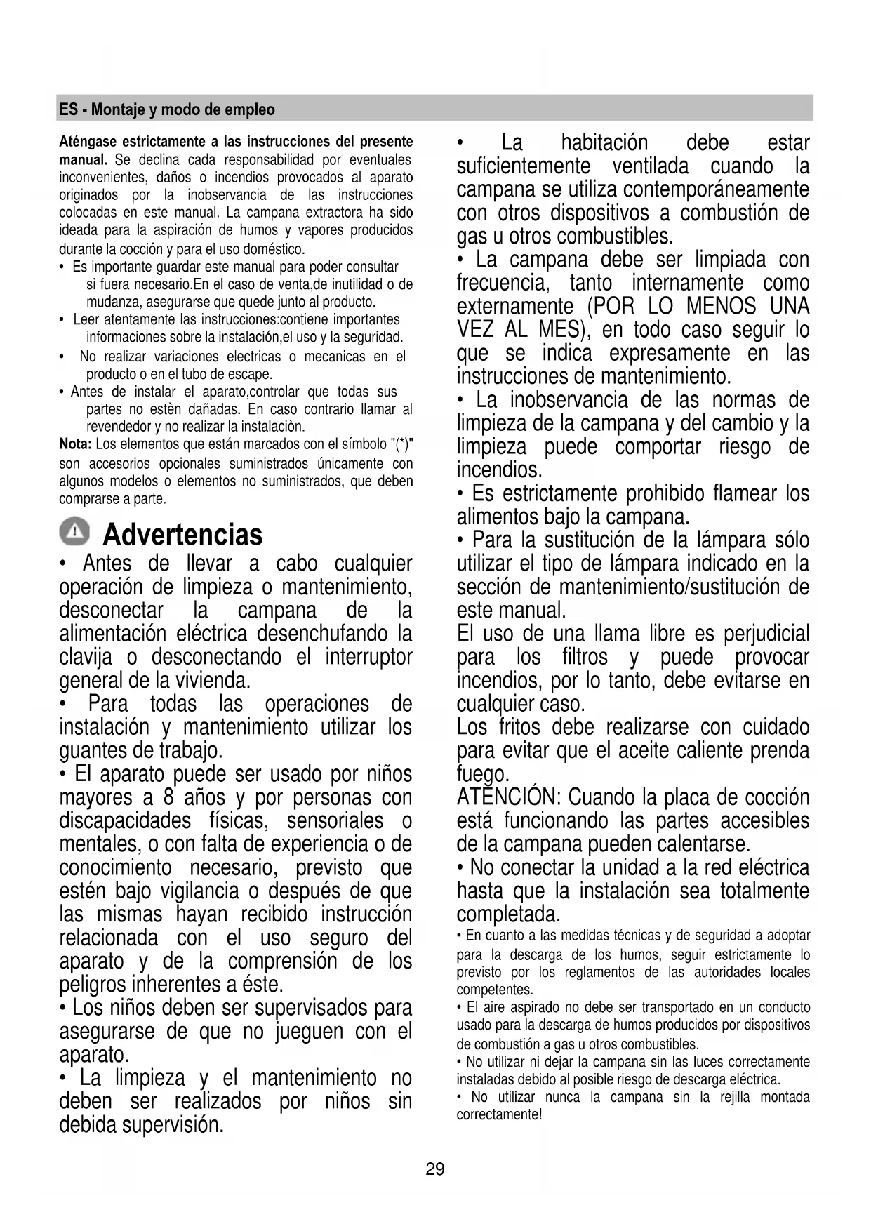 - No utilizar nunca la campana sin la rejilla montada correctamente!30