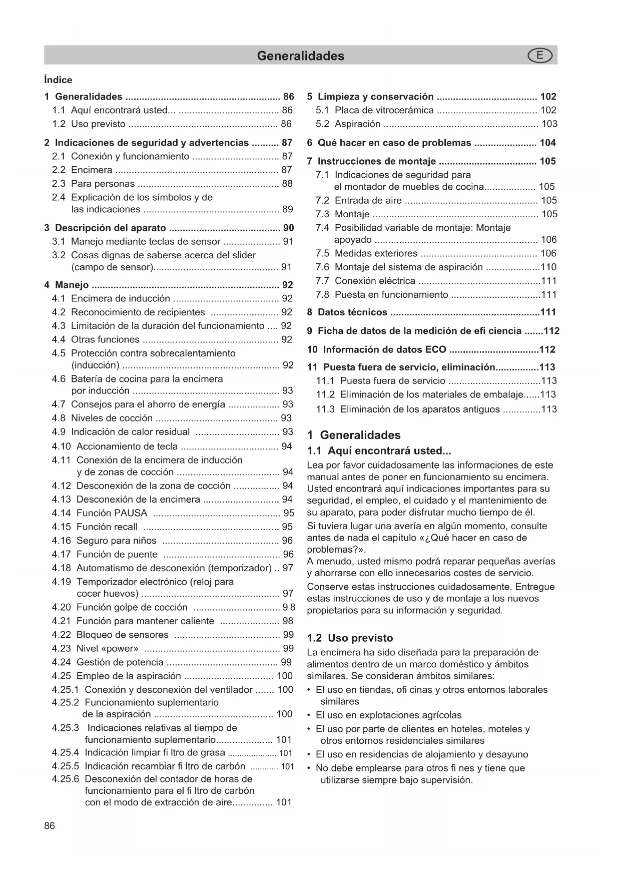 Lea por favor cuidadosamente las informaciones de este manual antes de poner en funcionamiento su encimera. Usted encontrará aquí indicaciones importantes para su seguridad, el empleo, el cuidado y el mantenimiento de su aparato, para poder disfrutar mucho tiempo de él. Si tuviera lugar una avería en algún momento, consulte antes de nada el capítulo «¿Qué hacer en caso de problemas?». A menudo, usted mismo podrá reparar pequeñas averías y ahorrarse con ello innecesarios costes de servicio. Conserve estas instrucciones cuidadosamente. Entregue estas instrucciones de uso y de montaje a los nuevos propietarios para su información y seguridad.