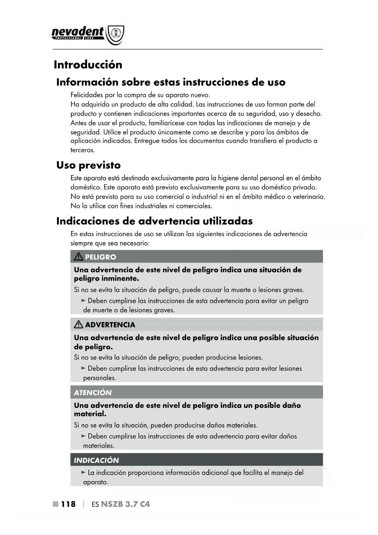 Encuentra gratis el manual del aparato NSZB 3.7 C4 NEVADENT en formato PDF.
