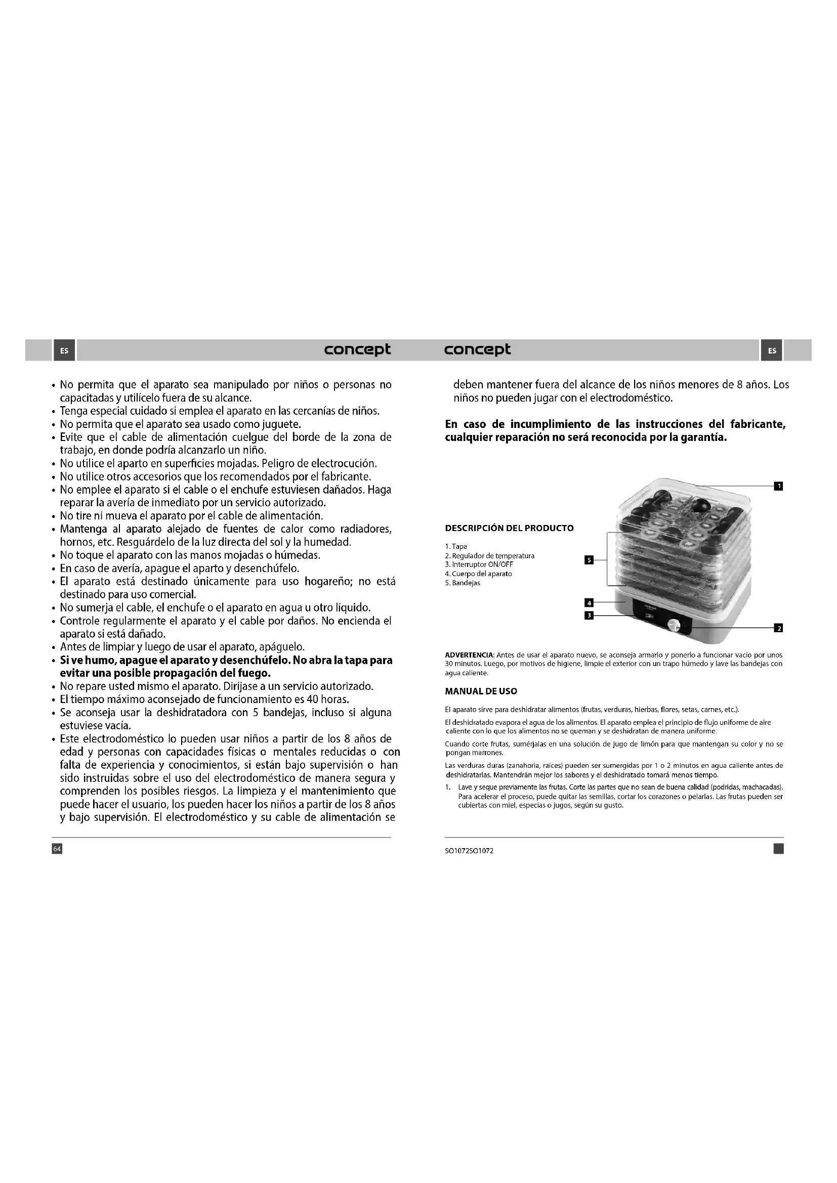 SO1072 - Deshidratador de alimentos Concept - Manual de uso y guía de instrucciones gratis