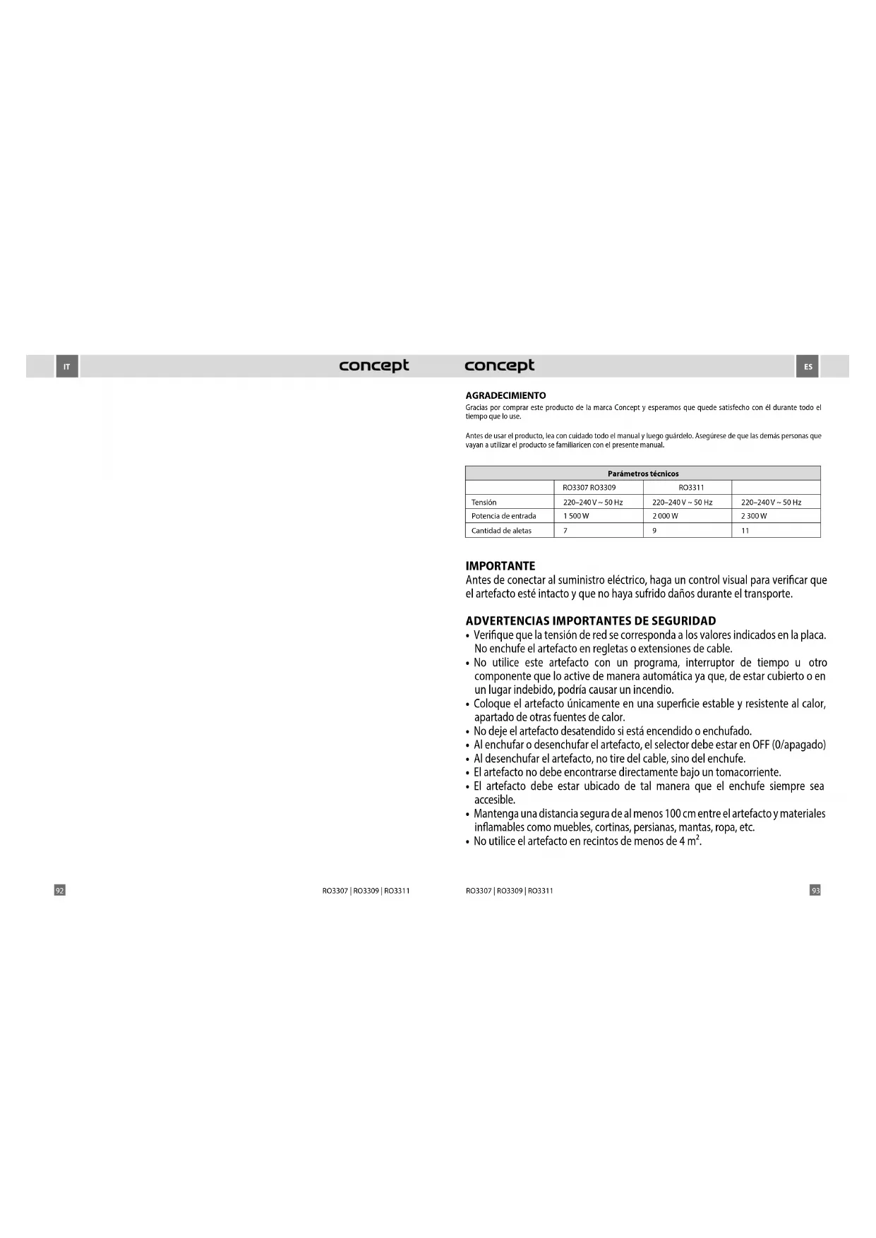 MANUAL DE USUARIO RO3311 Concept