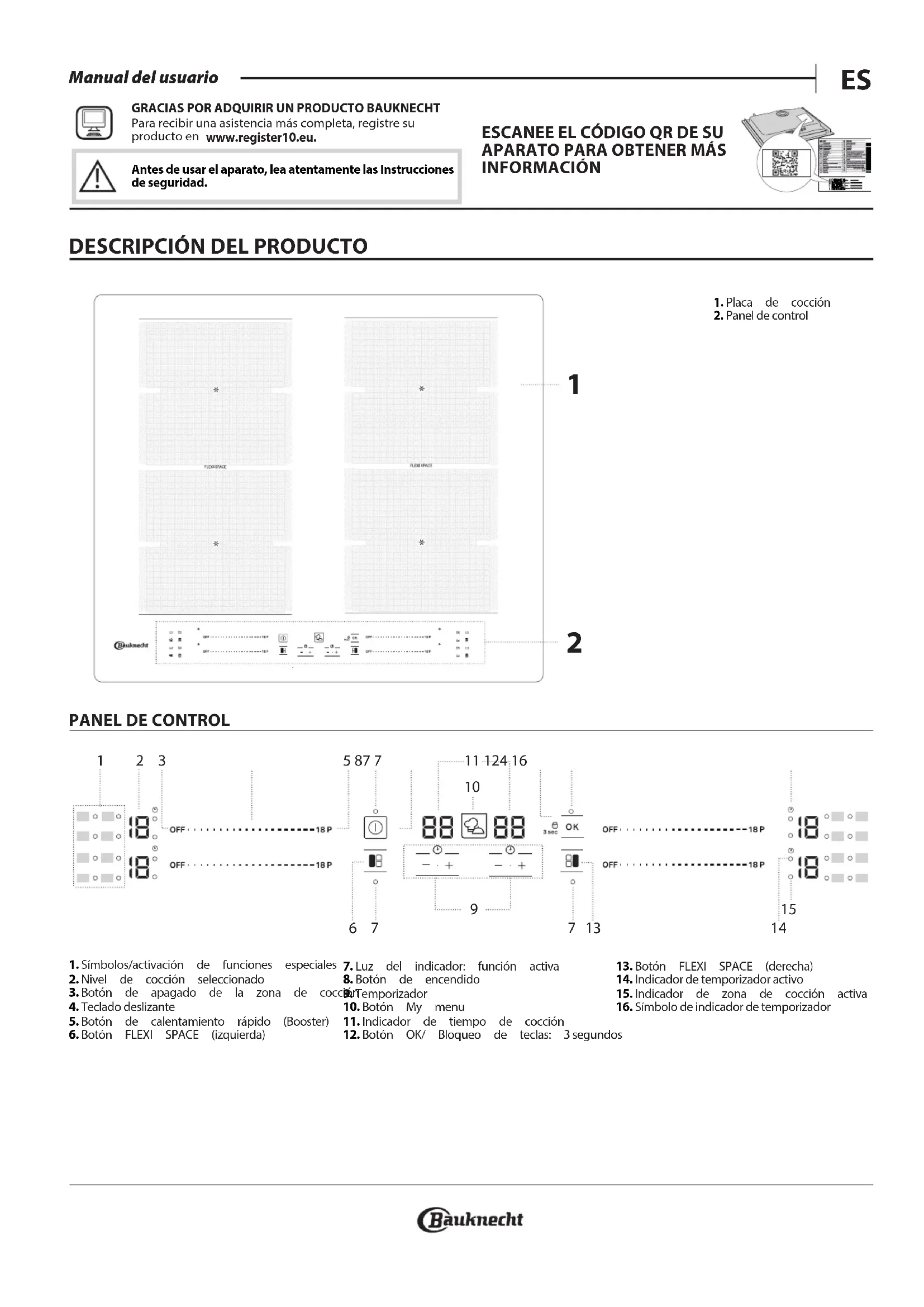 GRACIAS POR ADQUIRIR UN PRODUCTO BAUKNECHTPara recibir una asistencia más completa, registre su producto en www.register10.eu. ESCANEE EL CÓDIGO QR DE SU