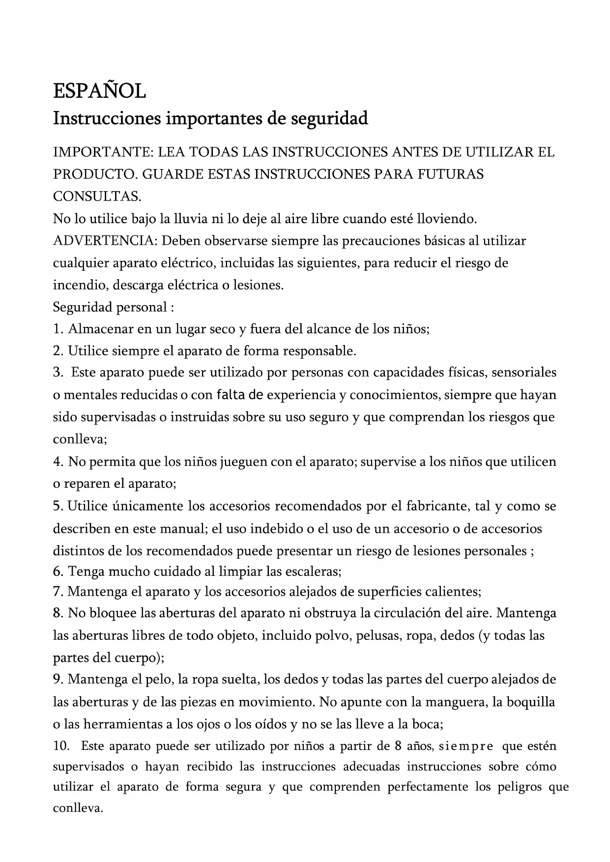 1. Este aparato ha sido diseñado exclusivamente para la aspiración doméstica en