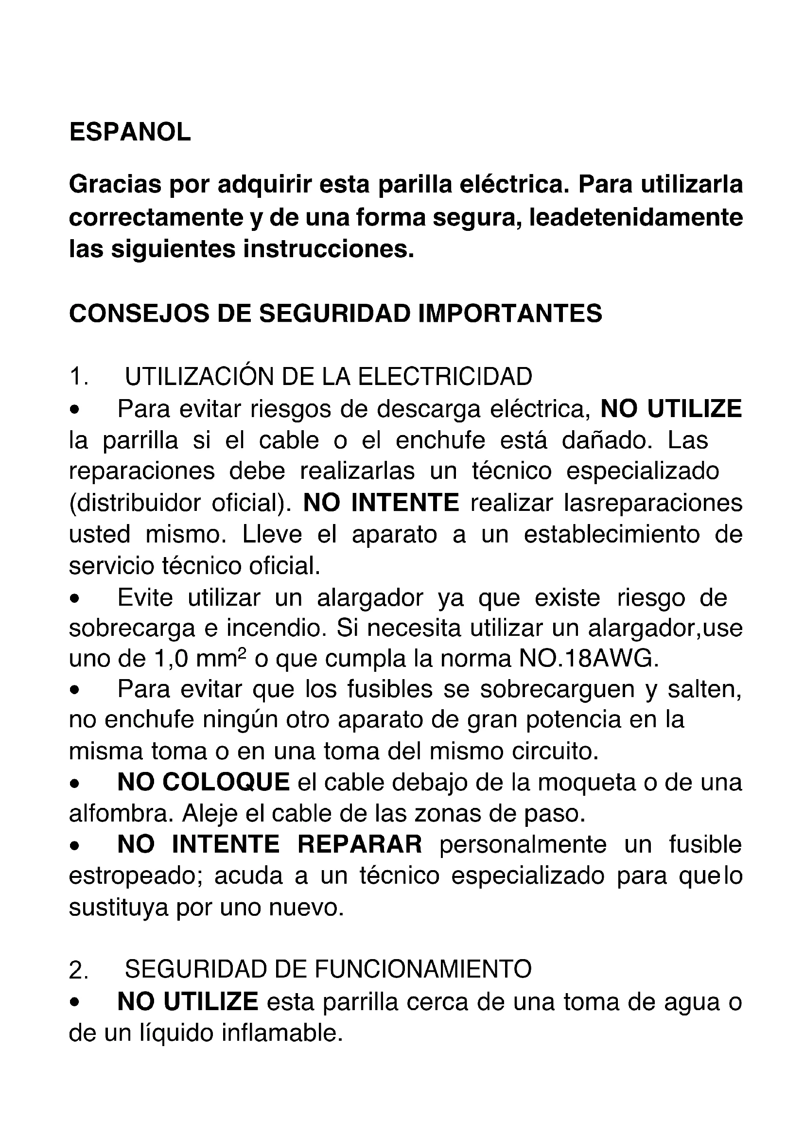 Adeva SAS / H.Koenig Europe - 8 rue Marc Seguin - 77290 Mitry Mory - France www.hkoenig.com - sav@hkoenig.com - contact@hkoenig.com - Tél: +33 1 64 67 00 05ESPANOL Gracias por adquirir esta parilla eléctrica. Para utilizarla correctamente y de una forma segura, lea detenidamente las siguientes instrucciones.