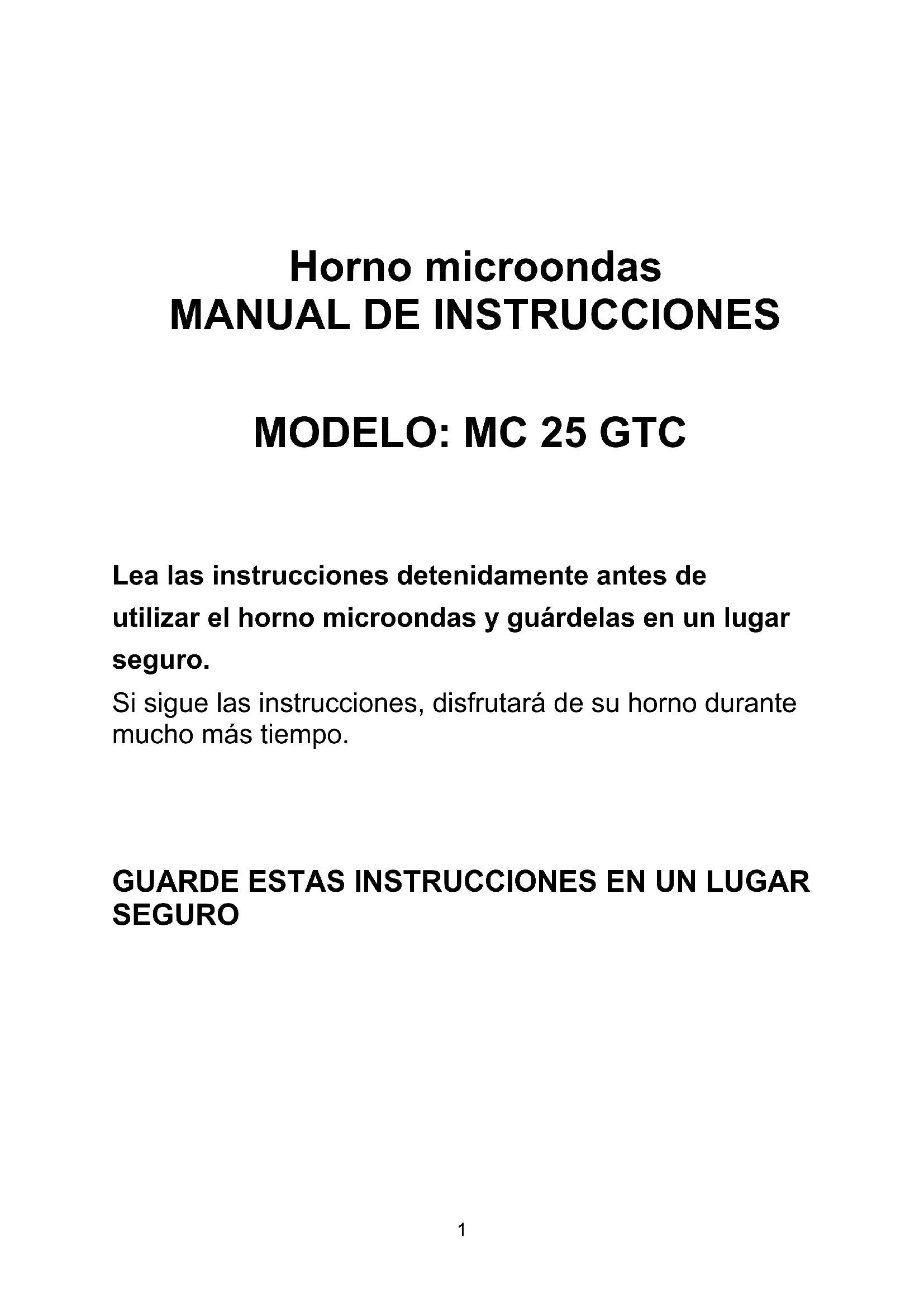 Lea las instrucciones detenidamente antes de utilizar el horno microondas y guárdelas en un lugar seguro. Si sigue las instrucciones, disfrutará de su horno durante mucho más tiempo.