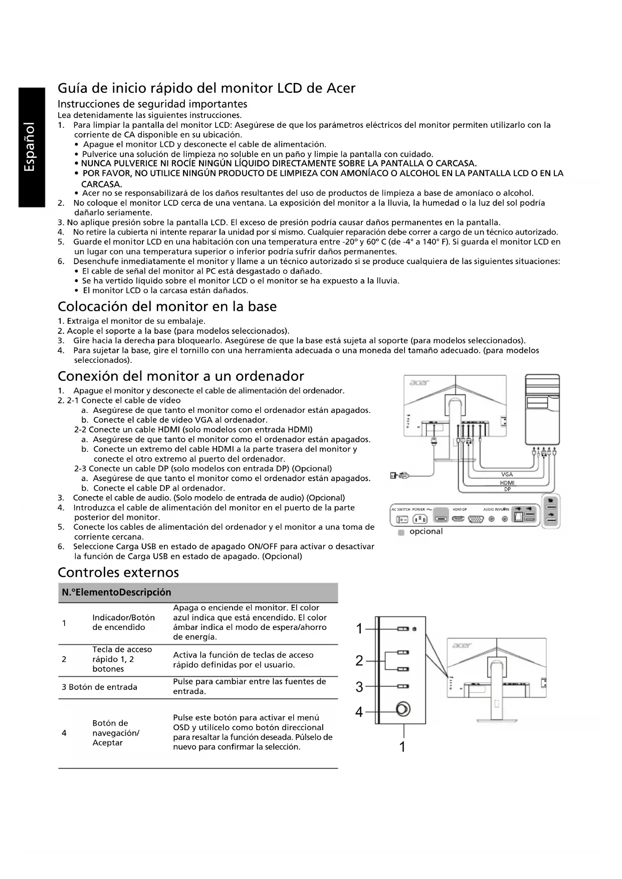 BL270 - Monitor ACER - Manual de uso y guía de instrucciones gratis