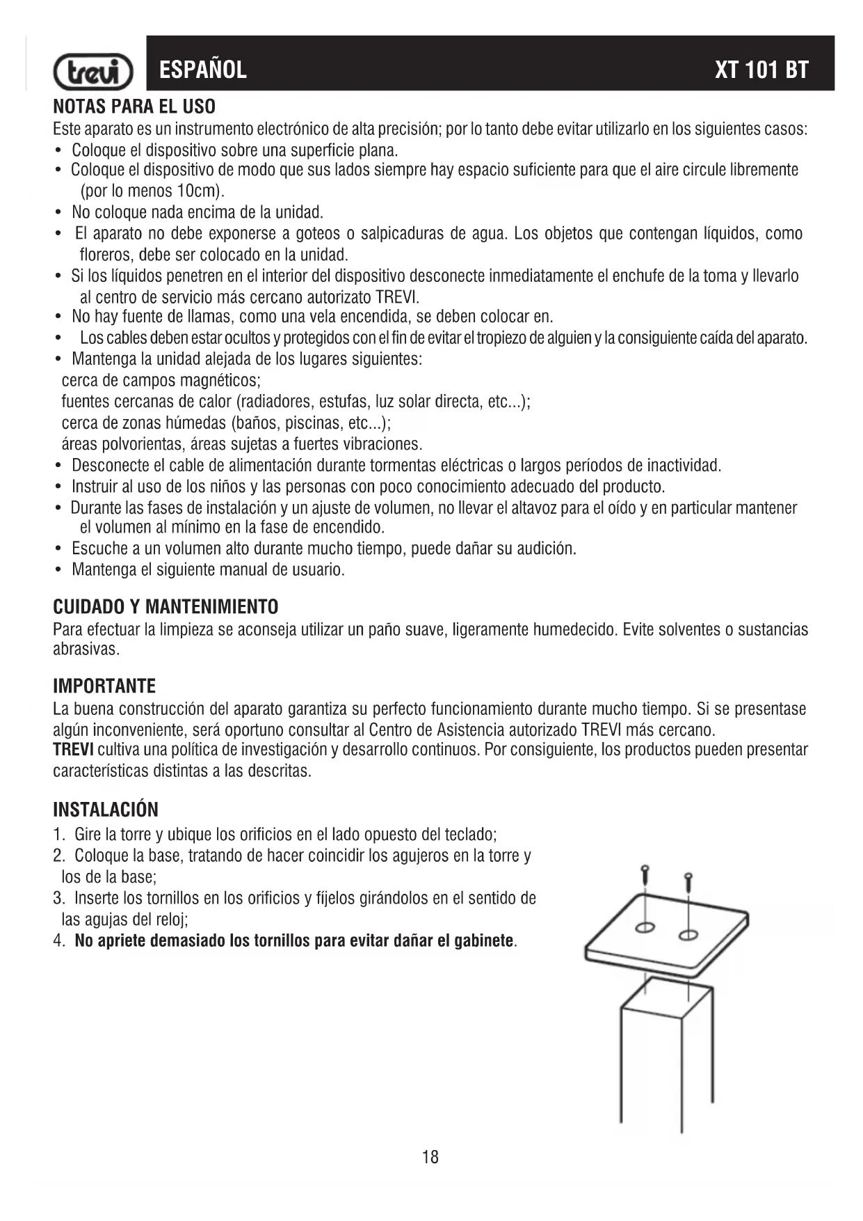 Encuentra gratis el manual del aparato XT 101 BT Trevi en formato PDF.