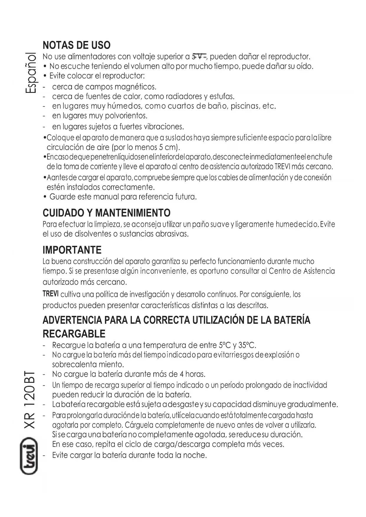 MANUAL DE USUARIO XR 120 BT Trevi