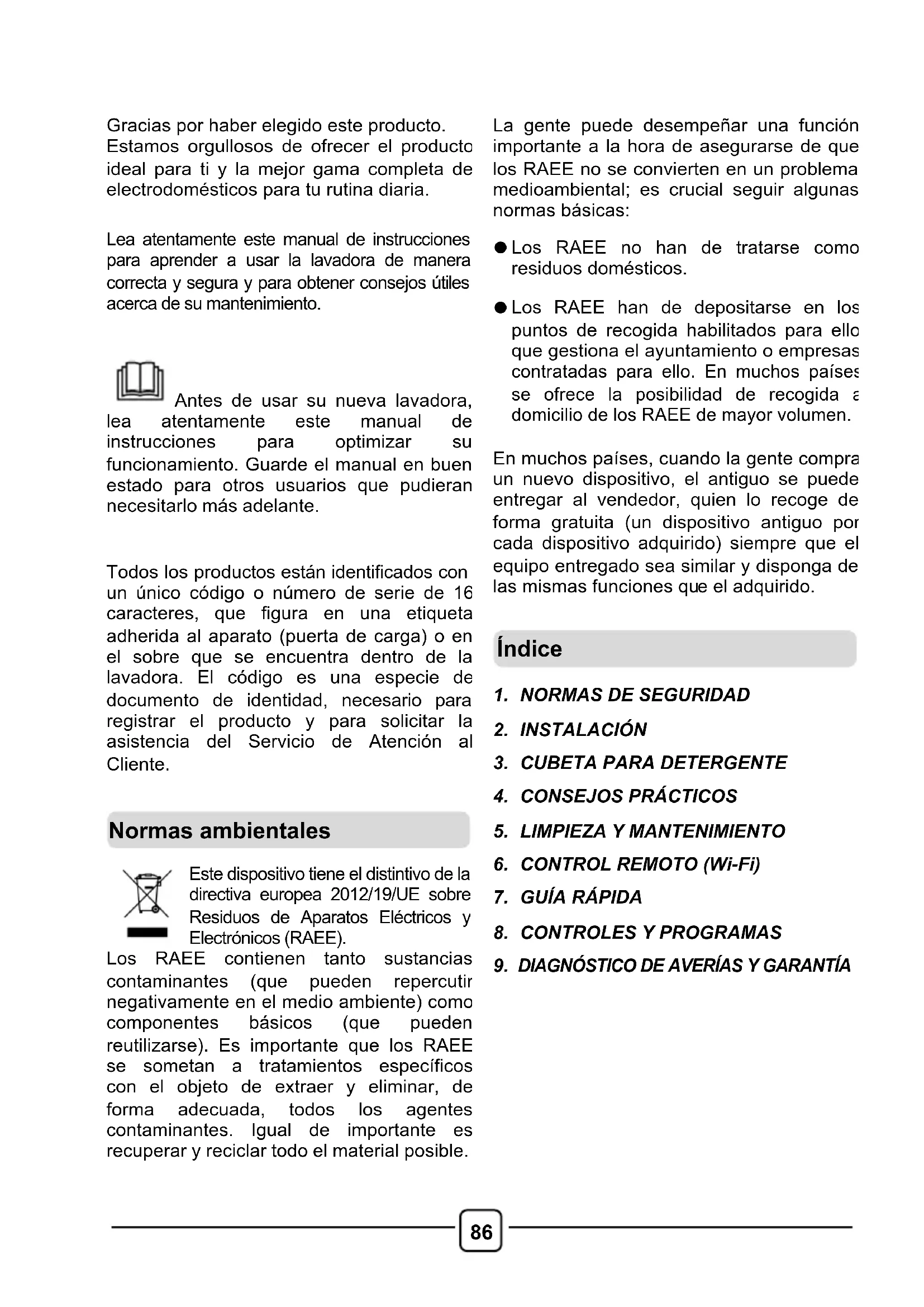 Lea atentamente este manual de instrucciones para aprender a usar la lavadora de manera correcta y segura y para obtener consejos útiles acerca de su mantenimiento.